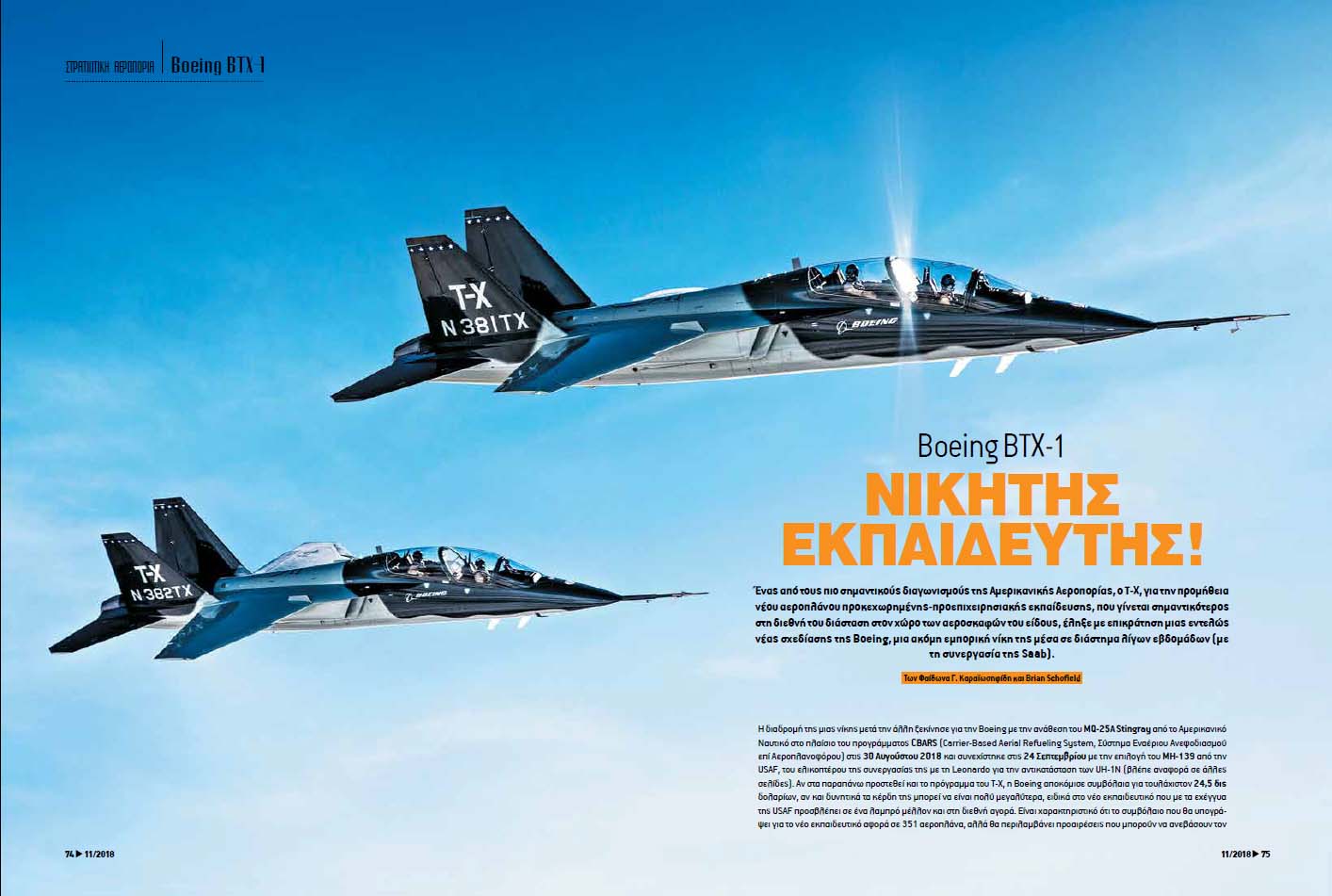Ένας από τους πιο σημαντικούς διαγωνισμούς της Αμερικανικής Αεροπορίας, o T-X, για την προμήθεια νέου αεροπλάνου προκεχωρημένης-προεπιχειρησιακής εκπαίδευσης, που γίνεται σημαντικότερος στη διεθνή του διάσταση στον χώρο των αεροσκαφών του είδους, έληξε με επικράτηση μιας εντελώς νέας σχεδίασης της Boeing, μια ακόμη εμπορική νίκη της μέσα σε διάστημα λίγων εβδομάδων (με τη συνεργασία της Saab).