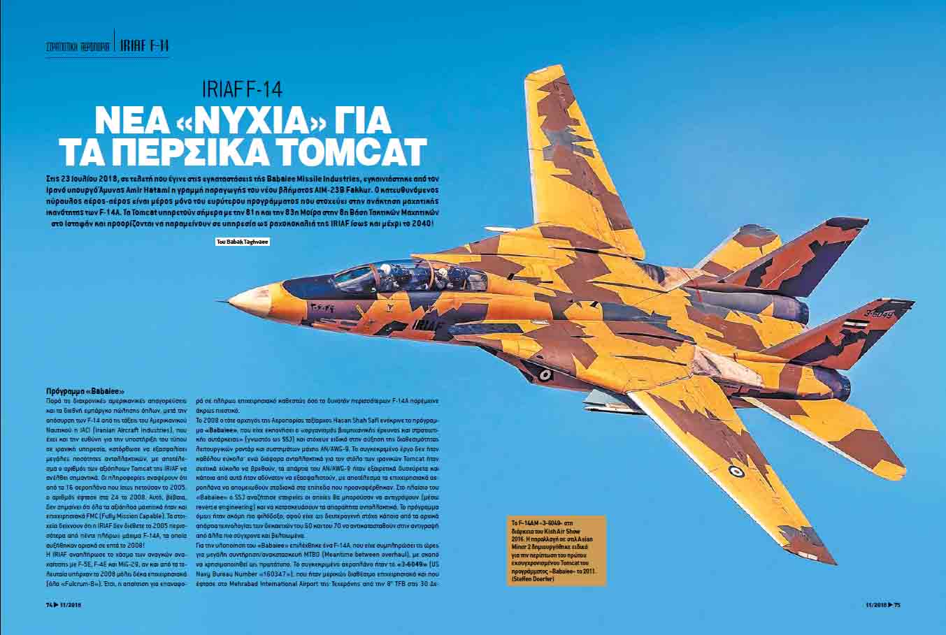 Τον περασμένο Ιούλιο, σε τελετή που έγινε στις εγκαταστάσεις τής Babaiee Missile Industries, εγκαινιάστηκε η γραμμή παραγωγής του νέου βλήματος AIM-23B Fakkur. Ο κατευθυνόμενος πύραυλος αέρος-αέρος είναι μέρος μόνο του ευρύτερου προγράμματος που στοχεύει στην ανάκτηση μαχητικής ικανότητας των F-14A. Τα Tomcat υπηρετούν σήμερα με την 81η και την 83η Μοίρα στην 8η Βάση Τακτικών Μαχητικών στο Ισταφάν και προορίζονται να παραμείνουν σε υπηρεσία ως ραχοκοκαλιά της IRIAF ίσως και μέχρι το 2040!