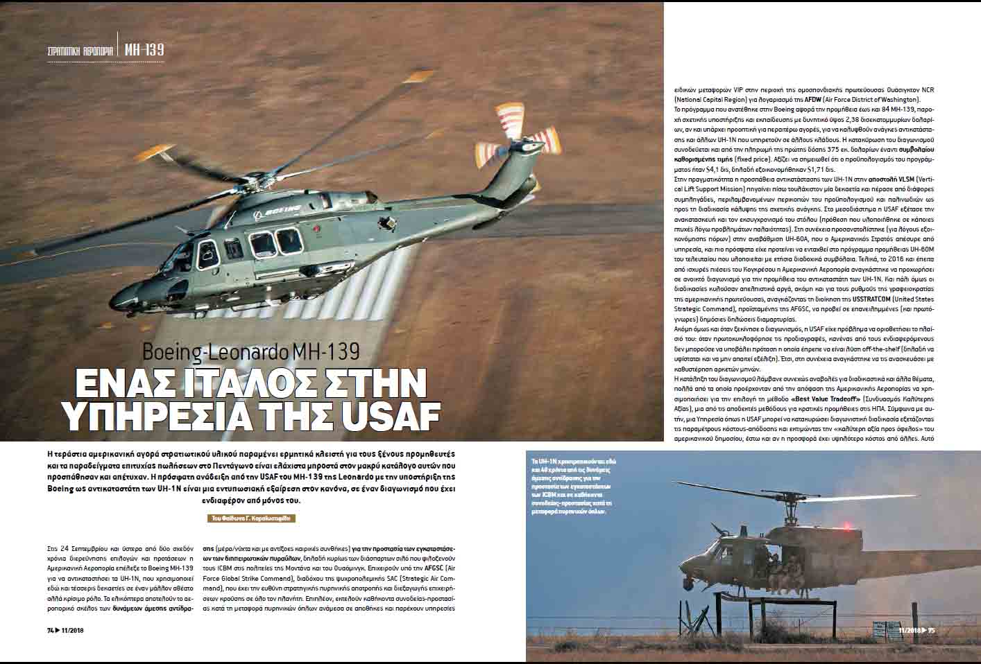 H τεράστια αμερικανική αγορά στρατιωτικού υλικού παραμένει ερμητικά κλειστή για τους ξένους προμηθευτές. Η πρόσφατη ανάδειξη από την USAF του MH-139 της Leonardo με την υποστήριξη της Boeing ως αντικαταστάτη των UH-1N είναι μια εντυπωσιακή εξαίρεση στον κανόνα, σε έναν διαγωνισμό που έχει ενδιαφέρον από μόνος του.