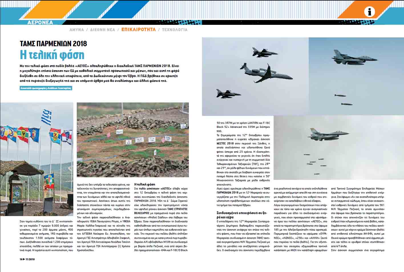 Με την τελική φάση στο πεδίο βολής «ΑΕΤΟΣ» ολοκληρώθηκε η διακλαδική ΤΑΜΣ ΠΑΡΜΕΝΙΩΝ 2018. Είναι η μεγαλύτερη ετήσια άσκηση των ΕΔ με καθολική συμμετοχή προσωπικού και μέσων, που και αυτή τη φορά διεξήχθη σε όλη την ελληνική επικράτεια, από τα Δωδεκάνησα μέχρι τον Έβρο. H Π&Δ βρέθηκε σε αρκετές από τις περιοχές διεξαγωγής της και σε επόμενο άρθρο μας θα αναλύσουμε και άλλες φάσεις της.