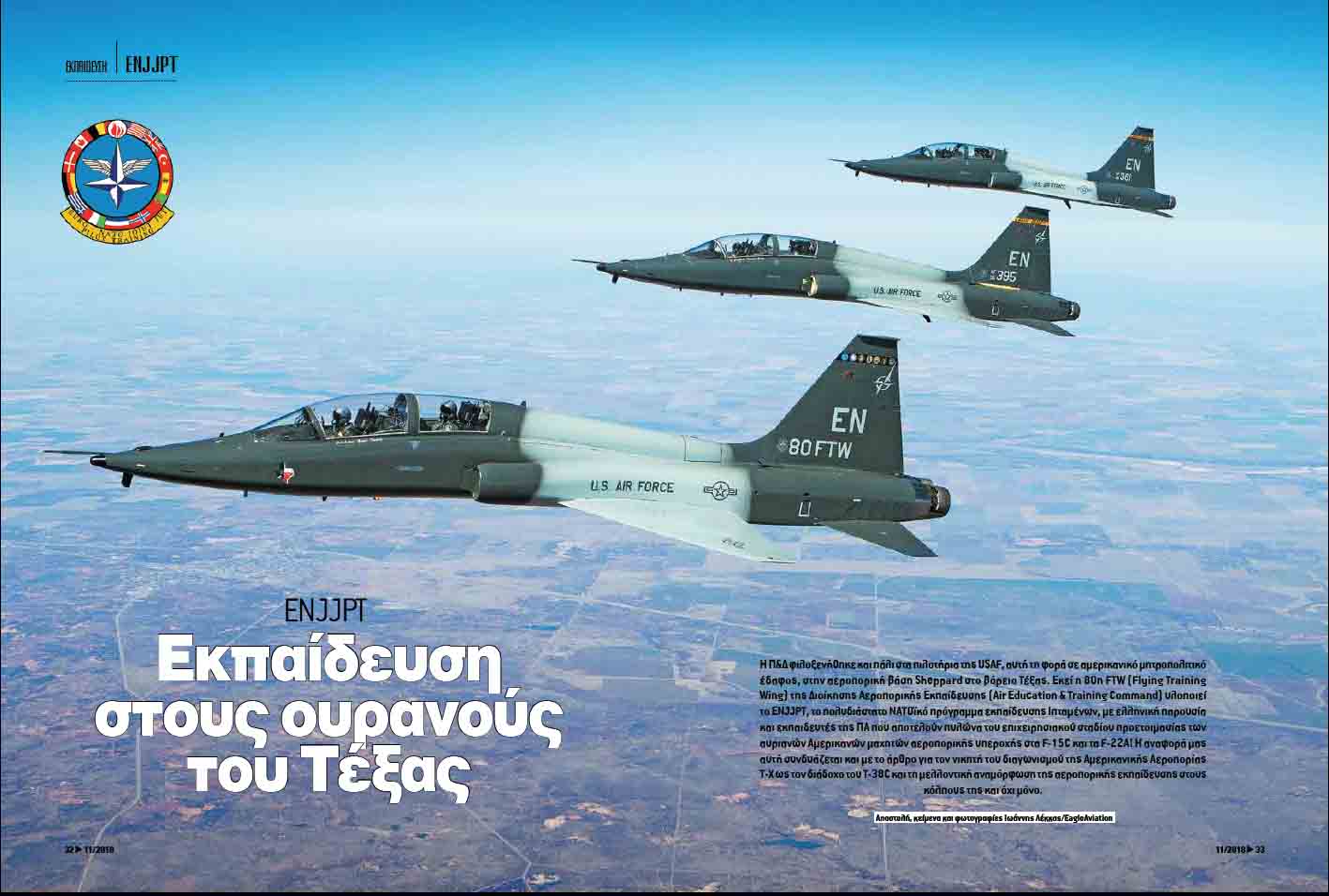 Φιλοξενηθήκαμε και πάλι στα πιλοτήρια της USAF, αυτή τη φορά σε αμερικανικό μητροπολιτικό έδαφος, στην AB Sheppard στο βόρειο Τέξας και τα T-38C της 80ης Πτέρυγας Πτητικής Εκπαίδευσης της Διοίκησης Αεροπορικής Εκπαίδευσης (Air Education & Training Command) της USAF για μια μοναδική πτήση με τα Talon της.