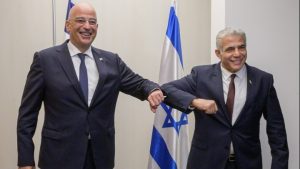 «Χαίρομαι που καλωσορίζω τον Έλληνα υπουργό Εξωτερικών, Νίκο Δένδια. Αυτή είναι η πρώτη επίσκεψη ενός Ευρωπαίου υπουργού Εξωτερικών μετά το σχηματισμό της κυβέρνησης», δήλωσε ο Ισραηλινός υπουργός Εξωτερικών Γιαΐρ Λαπίντ, όπως αναφέρεται σε ανακοίνωση του υπουργείου Εξωτερικών του Ισραήλ για τη συνάντηση.