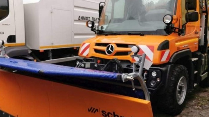 Πύδνας – Κολινδρού: Ένα όχημα πολλαπλών χρήσεων (πολυμηχάνημα) με λεπίδα αποχιονισμού και αλατοδιανομέα.