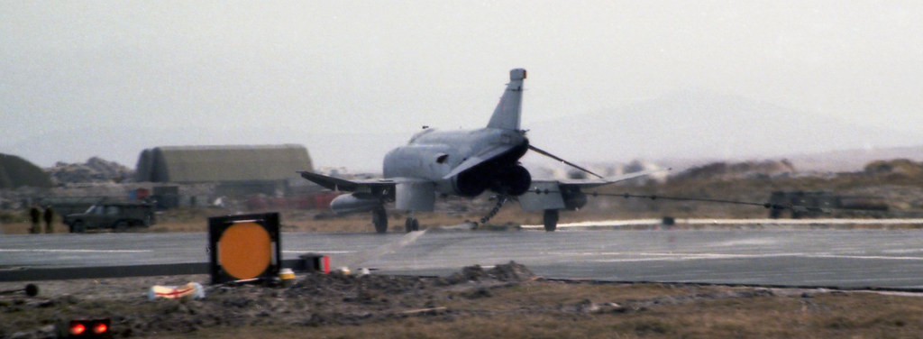 Αύγουστος 1982: Phantom της RAF προσγειώνονται στο αεροδρόμιο Stanley των Φώκλαντς μετά την βελτίωση του διαδρόμου με εννέα χιλιάδες φύλλα αλουμινίου.