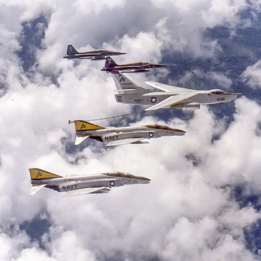 KA-3B Skywarrior της VAQ-308 ανεφοδιάζει δυο RCAF CF-5A/B Freedom Fighter και δυο F-4N Phantom II της Fighter VF-302.