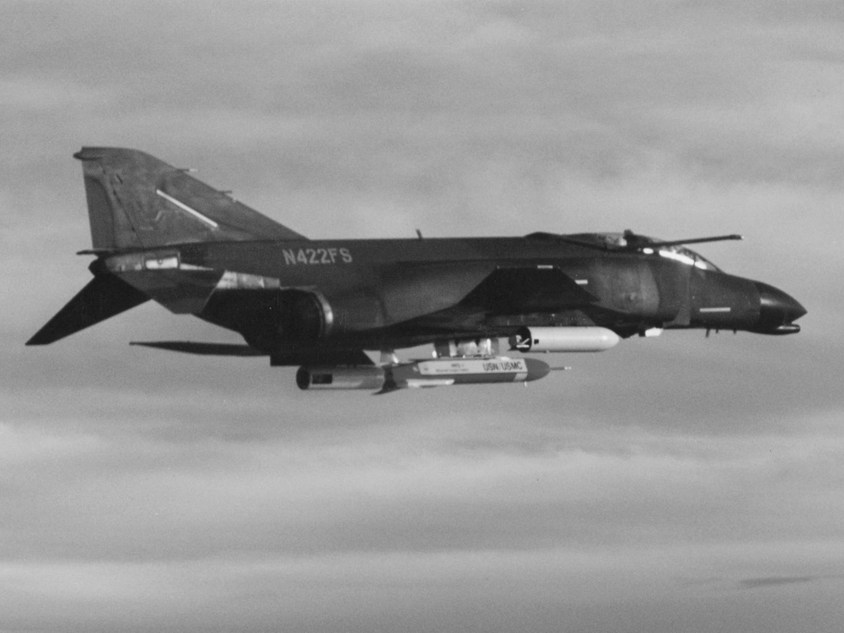 Ένα McDonnell F-4C Phantom II (USAF s/n 63-7564) σε πτήση κοντά στον U.S. Navy Naval Air Weapons Station China Lake, στην Καλιφόρνια (ΗΠΑ). Φέρει το AIWS (Aircraft Advanced Interdiction Weapon System» που αναπτύχθηκε από τις εταιρείες McDonnell Douglas και Hughes.