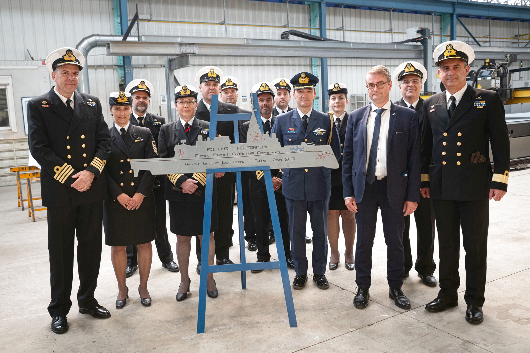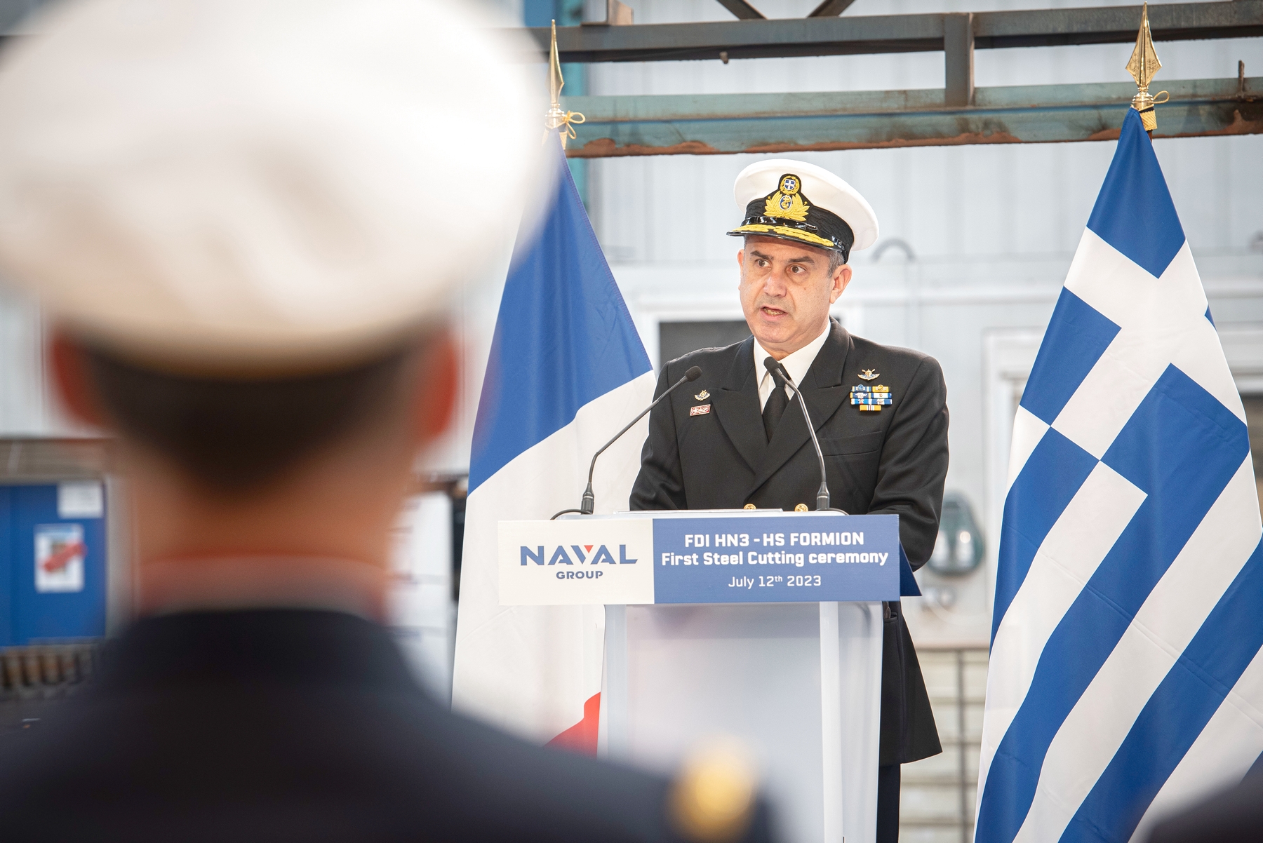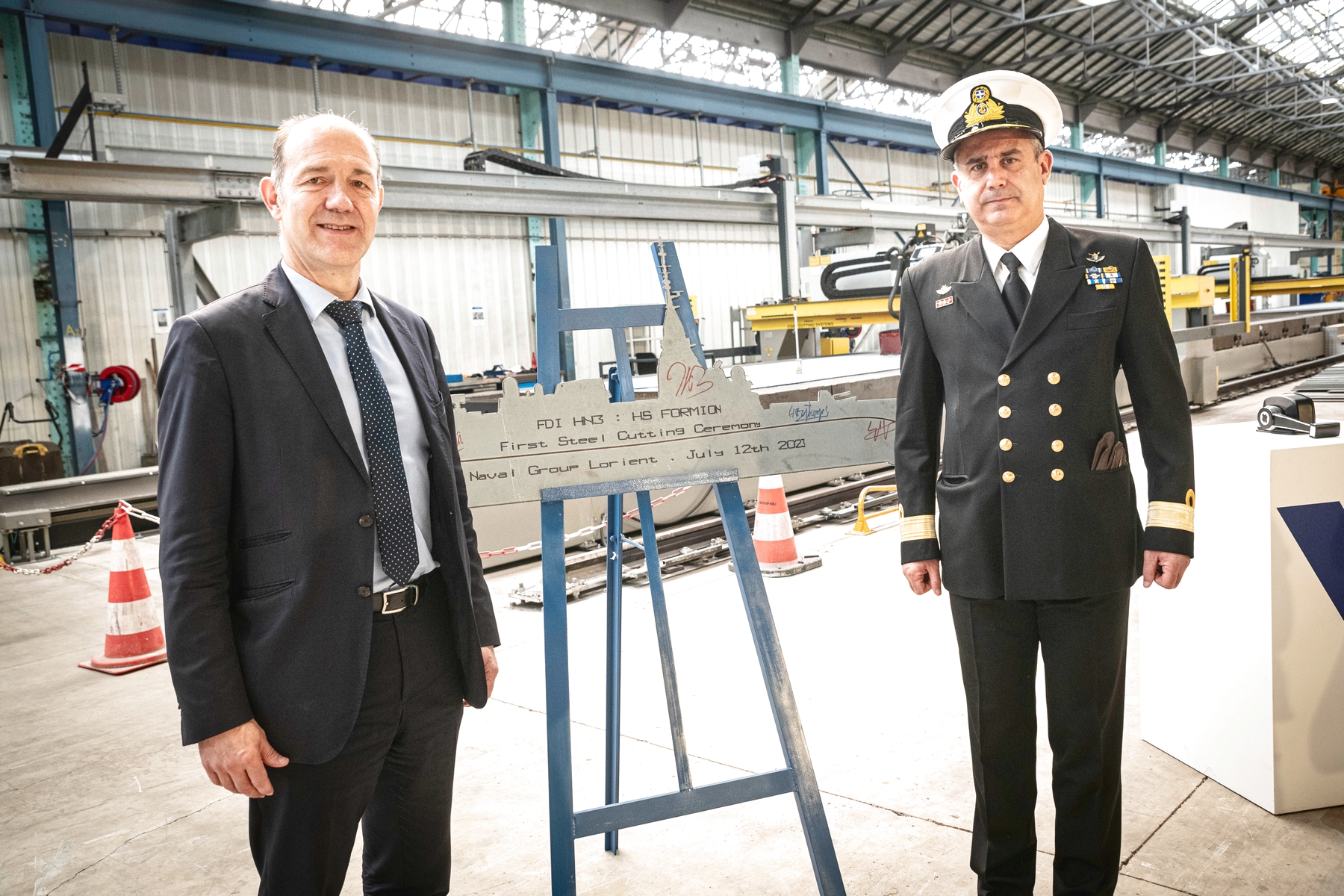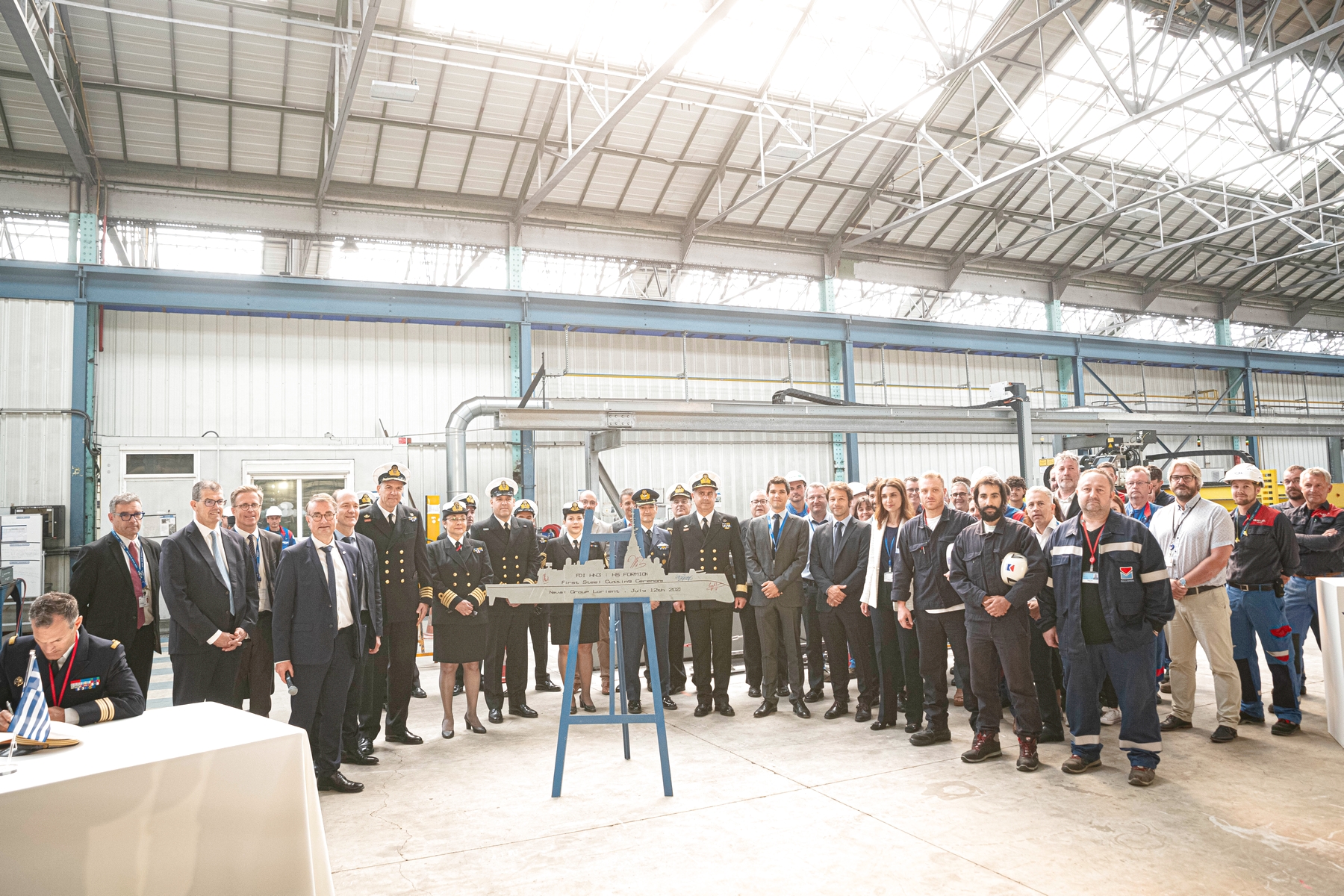 Και αρκετές φωτό από την τελετή της “κοπής μετάλλου” για την τρίτη φρεγάτα FDI HN, τη “Φορμίων”, που έγινε σήμερα στα ναυπηγεία του Λοριάν στη Γαλλία. Επικεφαλής της ελληνικής αντιπροσωπείας ήταν ο Αρχιπλοίαρχος Θεοχάρης Χατζόπουλος, ο οποίος ηγείται και του κλιμακίου του Ναυτικού που βρίσκεται εκεί, εποπτεύοντας τη ναυπήγηση των σκαφών. Από γαλλικής πλευράς παρέστη ο αντιπρόεδρος της Naval Group, Olivier de la Bourdonnaye.