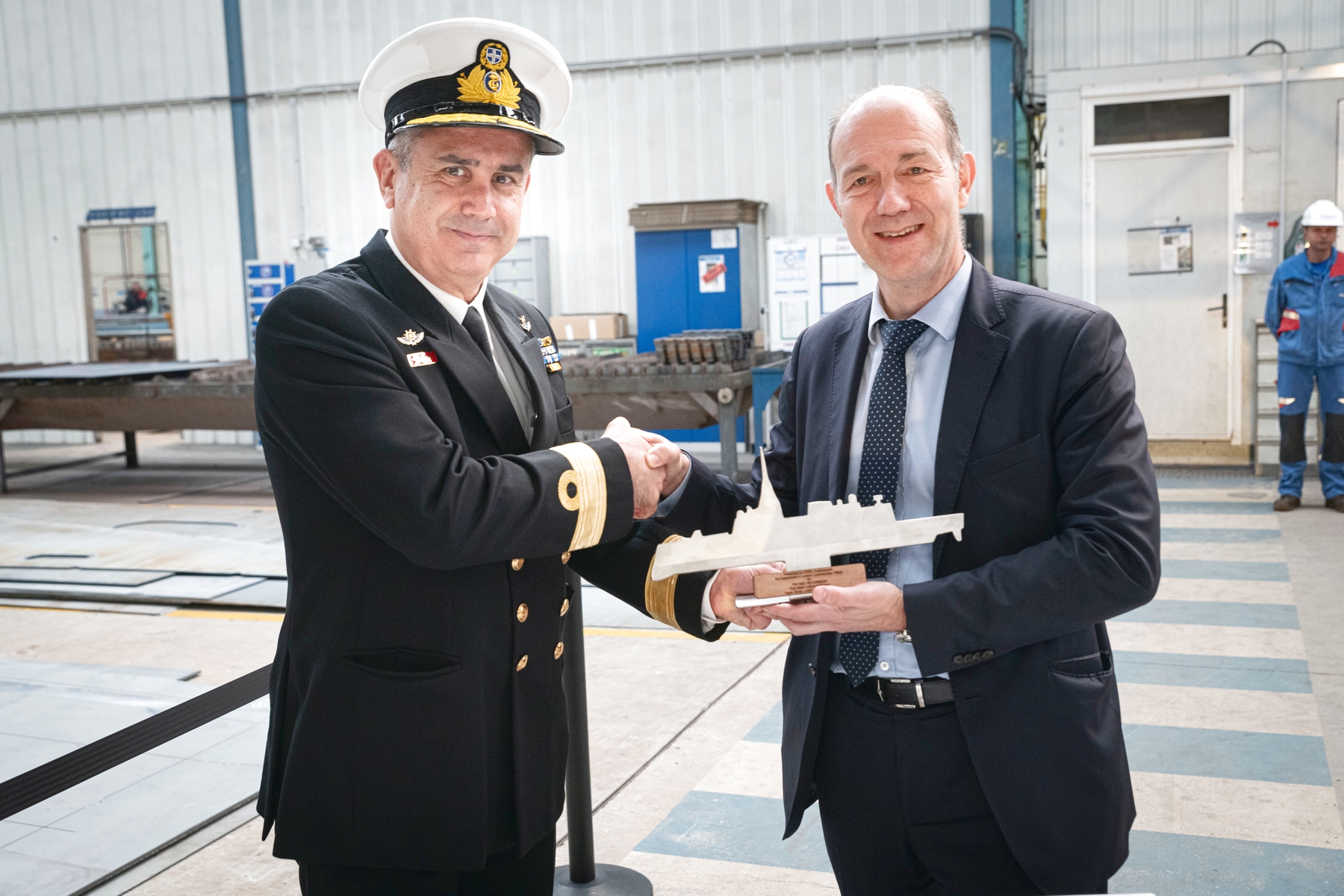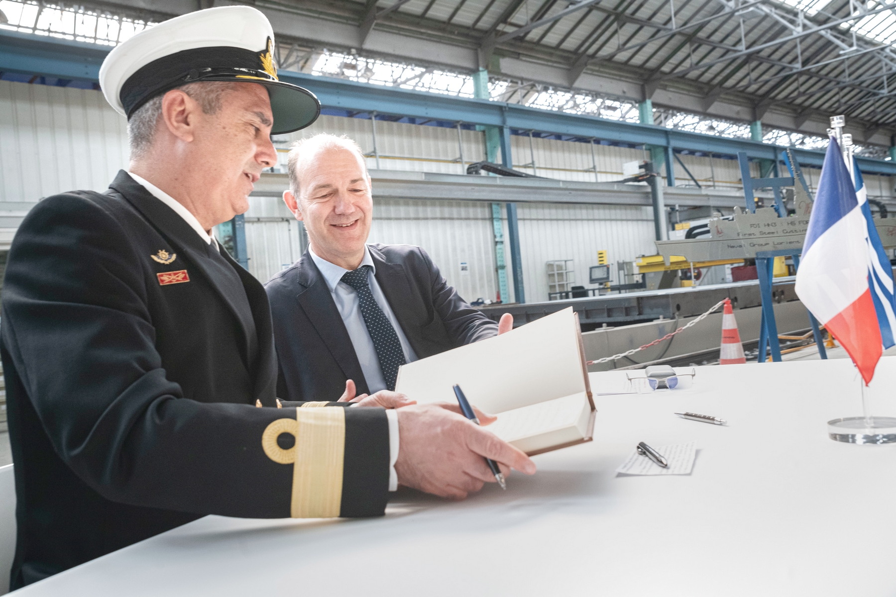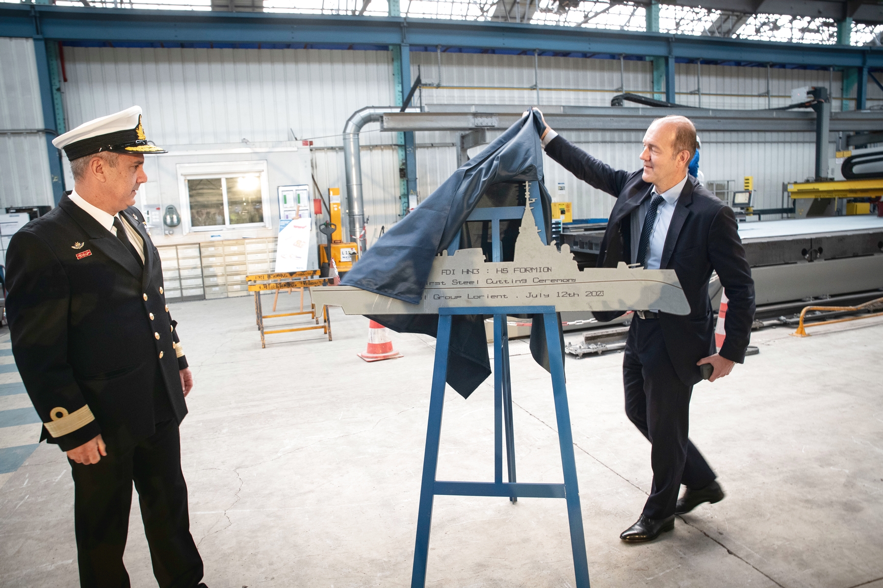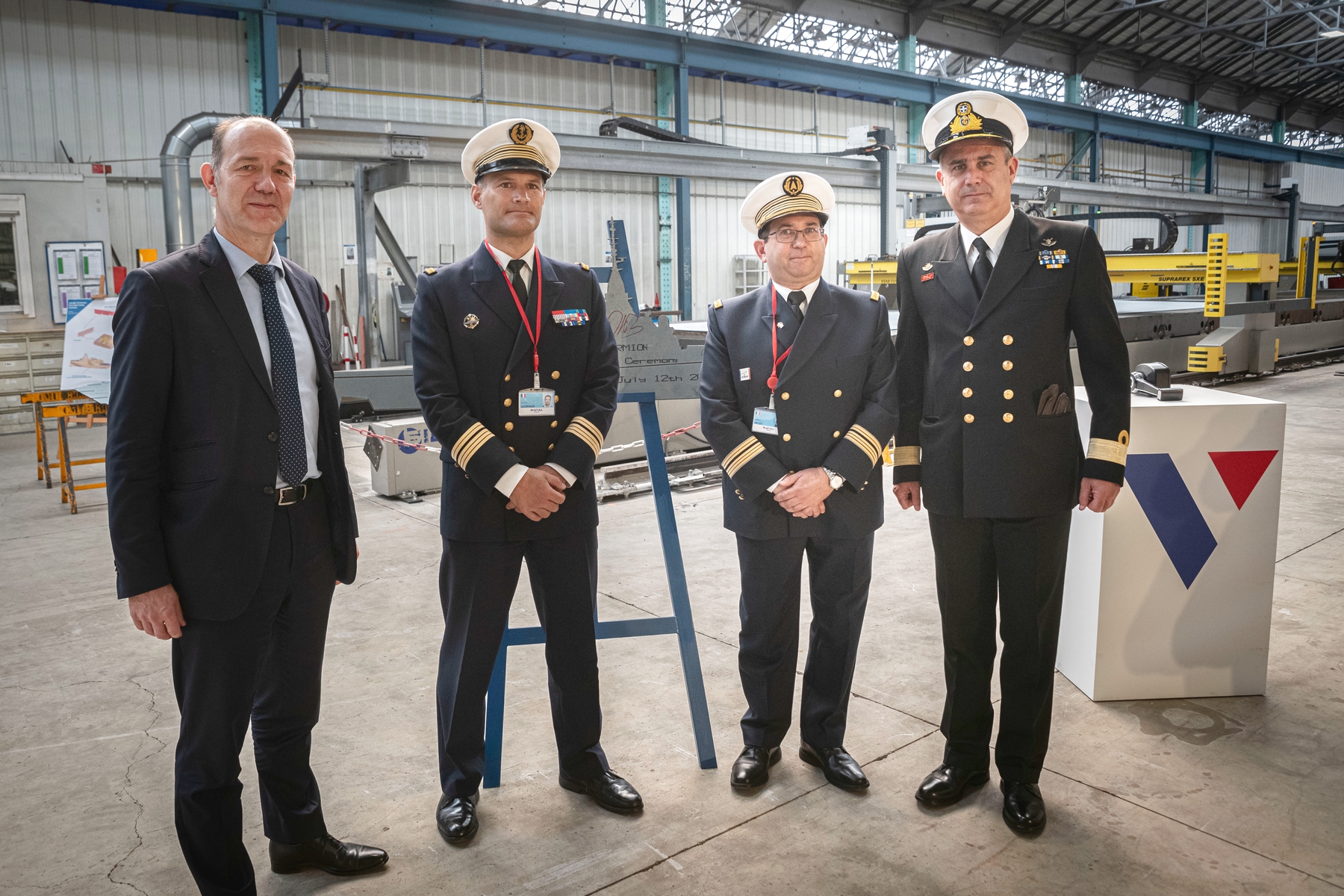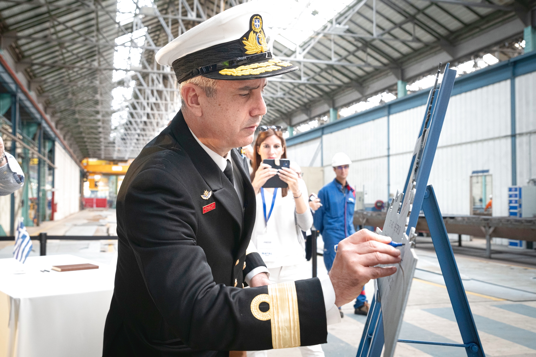 Και αρκετές φωτό από την τελετή της “κοπής μετάλλου” για την τρίτη φρεγάτα FDI HN, τη “Φορμίων”, που έγινε σήμερα στα ναυπηγεία του Λοριάν στη Γαλλία. Επικεφαλής της ελληνικής αντιπροσωπείας ήταν ο Αρχιπλοίαρχος Θεοχάρης Χατζόπουλος, ο οποίος ηγείται και του κλιμακίου του Ναυτικού που βρίσκεται εκεί, εποπτεύοντας τη ναυπήγηση των σκαφών. Από γαλλικής πλευράς παρέστη ο αντιπρόεδρος της Naval Group, Olivier de la Bourdonnaye.