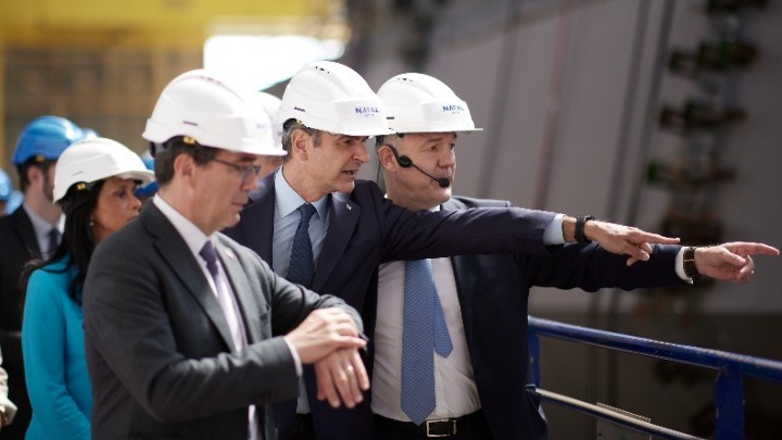 According to government sources, Mitsotakis boarded “Kimon” and visited the building sites of the frigates “Nearchos” and “Formion”, expected to be delivered around the end of 2025 and 2026, respectively.