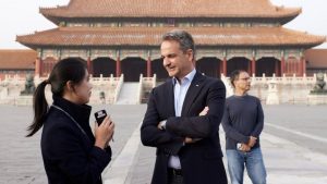 Mitsotakis arrived in China on Thursday and was given a tour of the Forbidden City in Beijing.