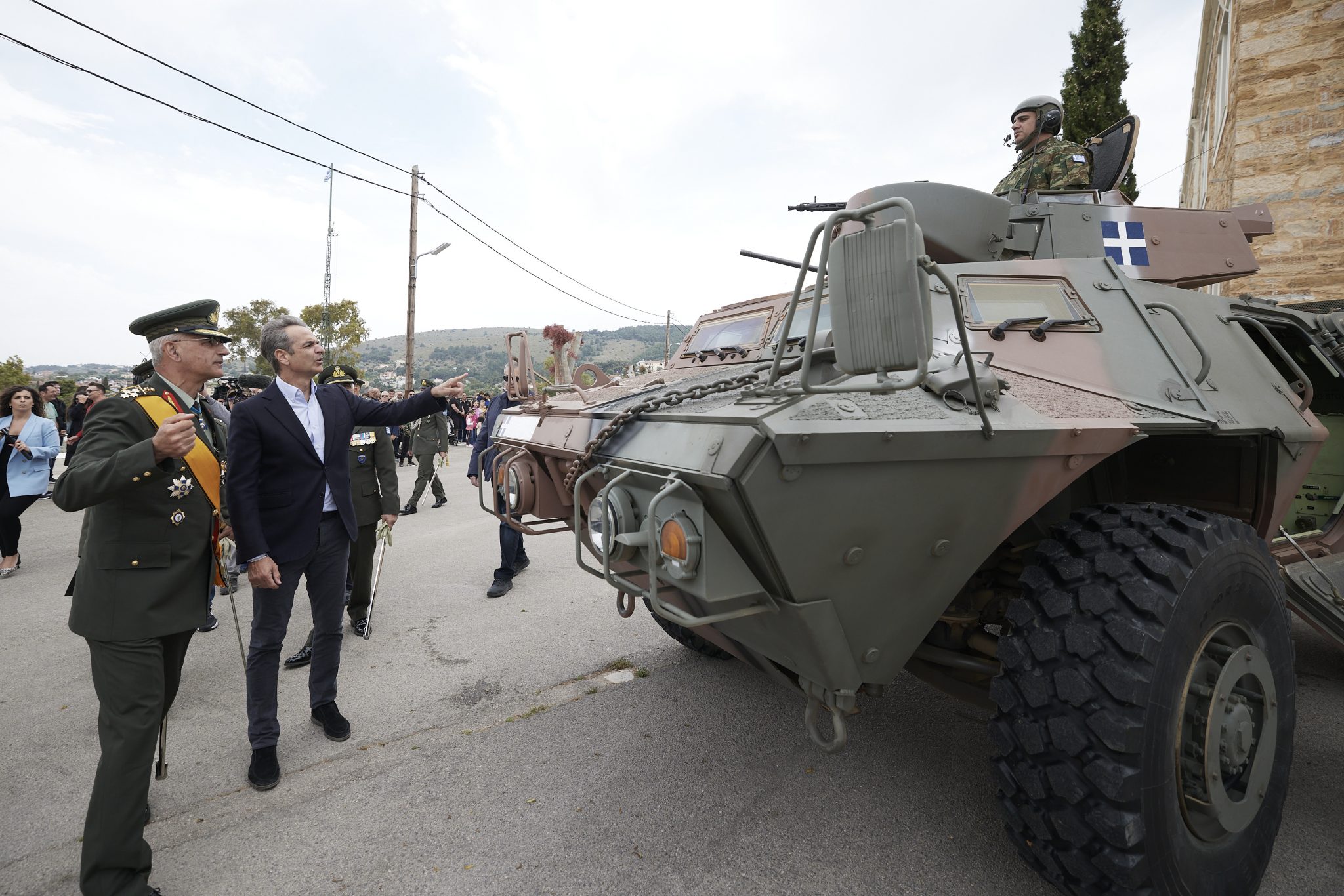 He attended events for the celebration of Saint George at the “Gialas” Army Camp and visited the Museum of Massacres at the Monastery of Saint Minas, as well as the Research Center of the Chios Mastiha Growers Association. The prime minister was accompanied by the Chief of the Hellenic National Defence General Staff, General Dimitrios Houpis, and spoke with national guards serving on the island, where he was also briefed on the weaponry systems at the unit.