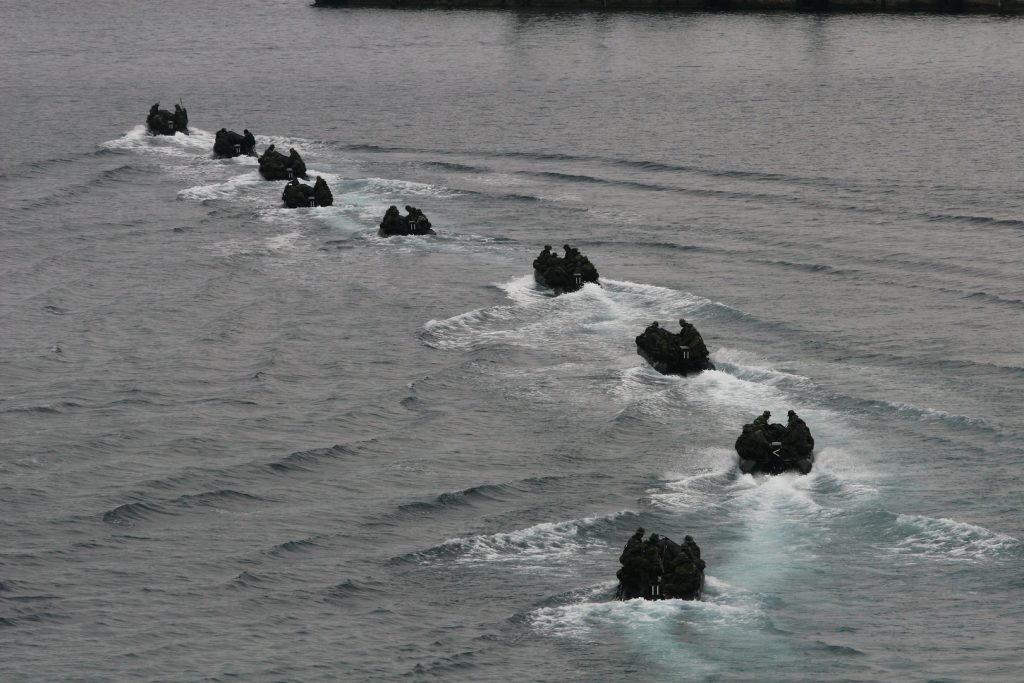 Ελαστική λέμβος της Ζ’ ΜΑΚ με εξωλέμβιο κινητήρα, σε άσκηση με το ΠΤΜ ”ΚΕΦΑΛΛΗΝΙΑ”, πηγή geetha.mil.gr