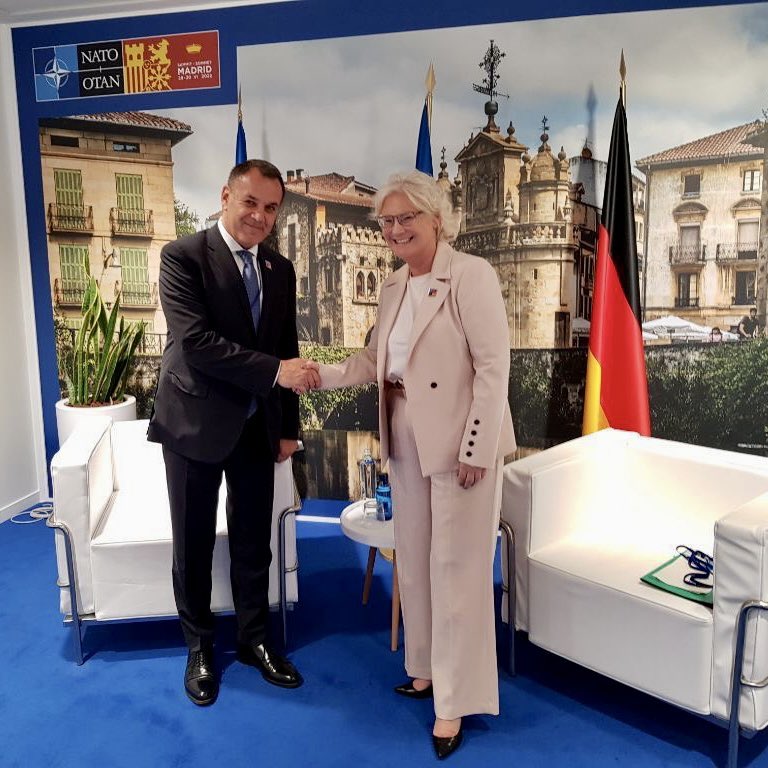 Ο υπουργός Εθνικής Άμυνας Νικόλαος Παναγιωτόπουλος συνάντησε σήμερα στη Μαδρίτη τη Γερμανίδα ομόλογό του, Κριστίν Λάμπρεχτ, με την οποία συζήτησε την πορεία της συμφωνίας ανταλλαγής τεθωρακισμένων οχημάτων BMP-1 του ΕΣ με γερμανικά Marder.