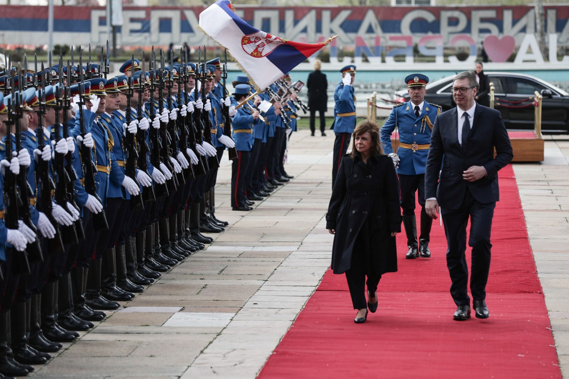 Η Πρόεδρος της Δημοκρατίας Κατερίνα Σακελλαροπούλου συναντήθηκε στο Βελιγράδι με τον ομόλογό της τής Σερβίας Αλεξάνταρ Βούτσιτς. Η επίσημη τελετή υποδοχής πραγματοποιήθηκε μπροστά από το κυβερνητικό κτίριο «Παλάτι της Σερβίας» με την ανάκρουση των εθνικών ύμνων των δύο χωρών και την απόδοση τιμών από την Προεδρική Φρουρά.