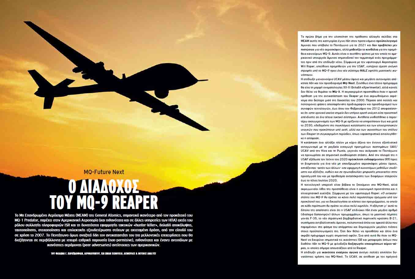 Το Μη Επανδρωμένο Αερόχημα Μάχης (MEAM) της General Atomics, σημαντικά ικανότερο από τον προκάτοχό του MQ-1 Predator, παρέχει στην Αμερικανική Αεροπορία (και πιθανότατα και σε άλλες υπηρεσίες των ΗΠΑ) εκτός του ρόλου συλλογής πληροφοριών ISR και τη δυνατότητα εφαρμογής τακτικών «hunter-killer», δηλαδή αποκάλυψης, ταυτοποίησης, στοχοποίησης και επιλεκτικής εξουδετέρωσης στόχων με εκτεταμένη δράση, από την είσοδό του σε χρήση το 2007. Το Πεντάγωνο όμως αναζητά ήδη τον αντικαταστάτη του για μελλοντικές επιχειρήσεις που θα διεξάγονται σε περιβάλλοντα με ισχυρή εχθρική παρουσία (non-permisive), πιθανότατα και έναντι αντιπάλων με ικανότητες αεράμυνας (peer adversaries) αντίστοιχες των αμερικανικών.
