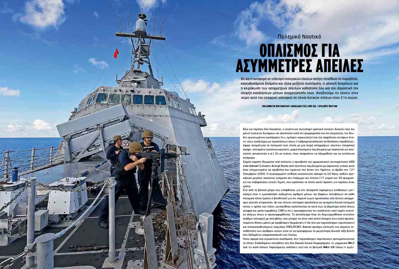 Αν και η αναφορά σε οπλισμό πολεμικών πλοίων ανάγει συνήθως σε πυροβόλα, κατευθυνόμενα βλήματα και άλλα μείζονα συστήματα, η αλλαγή δογμάτων και η κλιμάκωση των ασύμμετρων απειλών καθιστούν όλο και πιο σημαντική την ύπαρξη κατάλληλων μέσων αντιμετώπισής τους. Αναζητούμε τις λύσεις στον χώρο αυτό του ελαφρού οπλισμού σε πλοία δυτικών στόλων στον 21ο αιώνα.