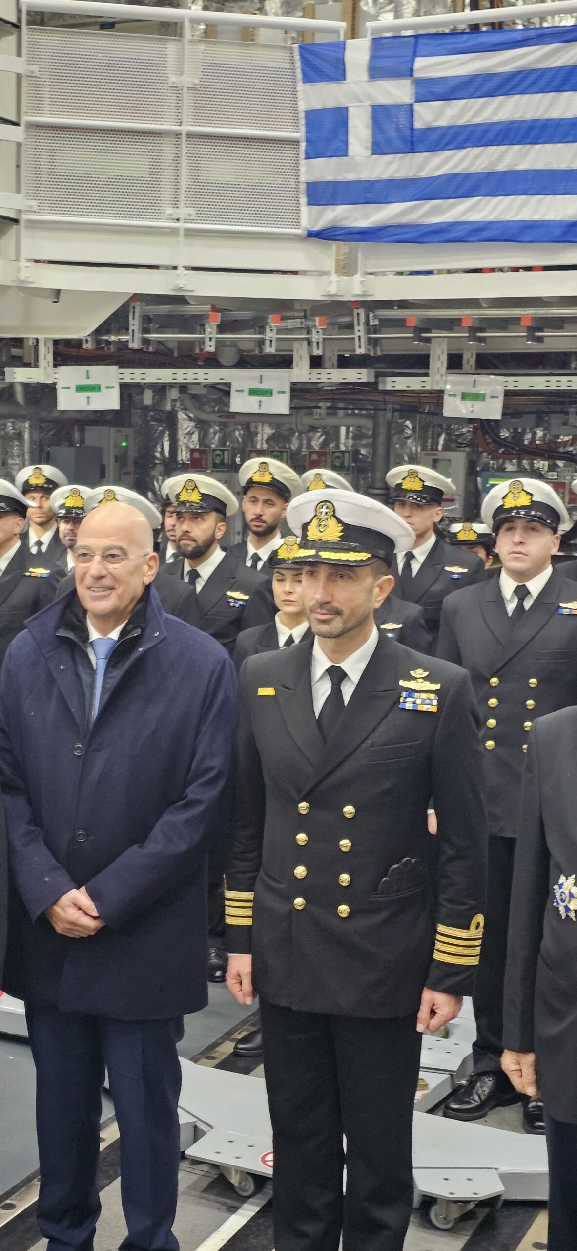 Ο Αντιναύαρχος Δημήτριος-Ελευθέριος Κατάρας, Αρχηγός του Γενικού Επιτελείου Ναυτικού, έχοντας την τύχη να είναι πρώτος ΑΓΕΝ που θα επιχειρεί με νέα κύρια μονάδα έπειτα από πολλά χρόνια αδράνειας, απευθύνθηκε στο ακροατήριο, τονίζοντας τη σημασία της στιγμής για την ελληνική ναυτική ισχύ και παράδοση, όπως και την κοινή πορεία με το Marine Nationale.