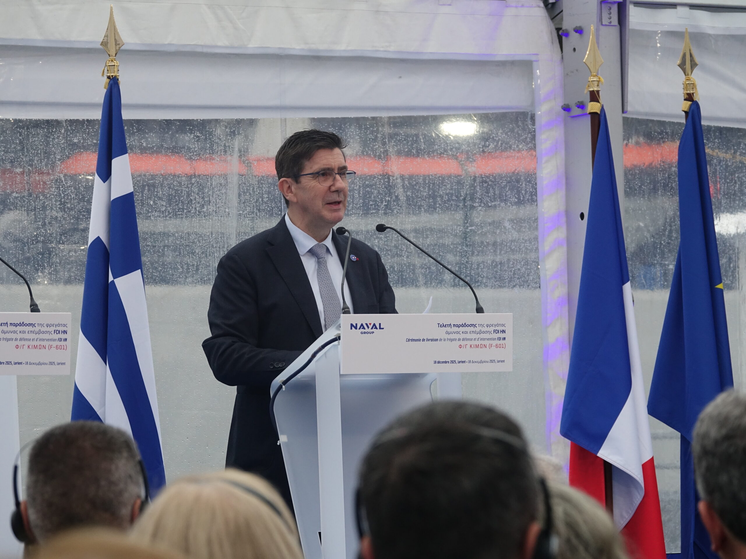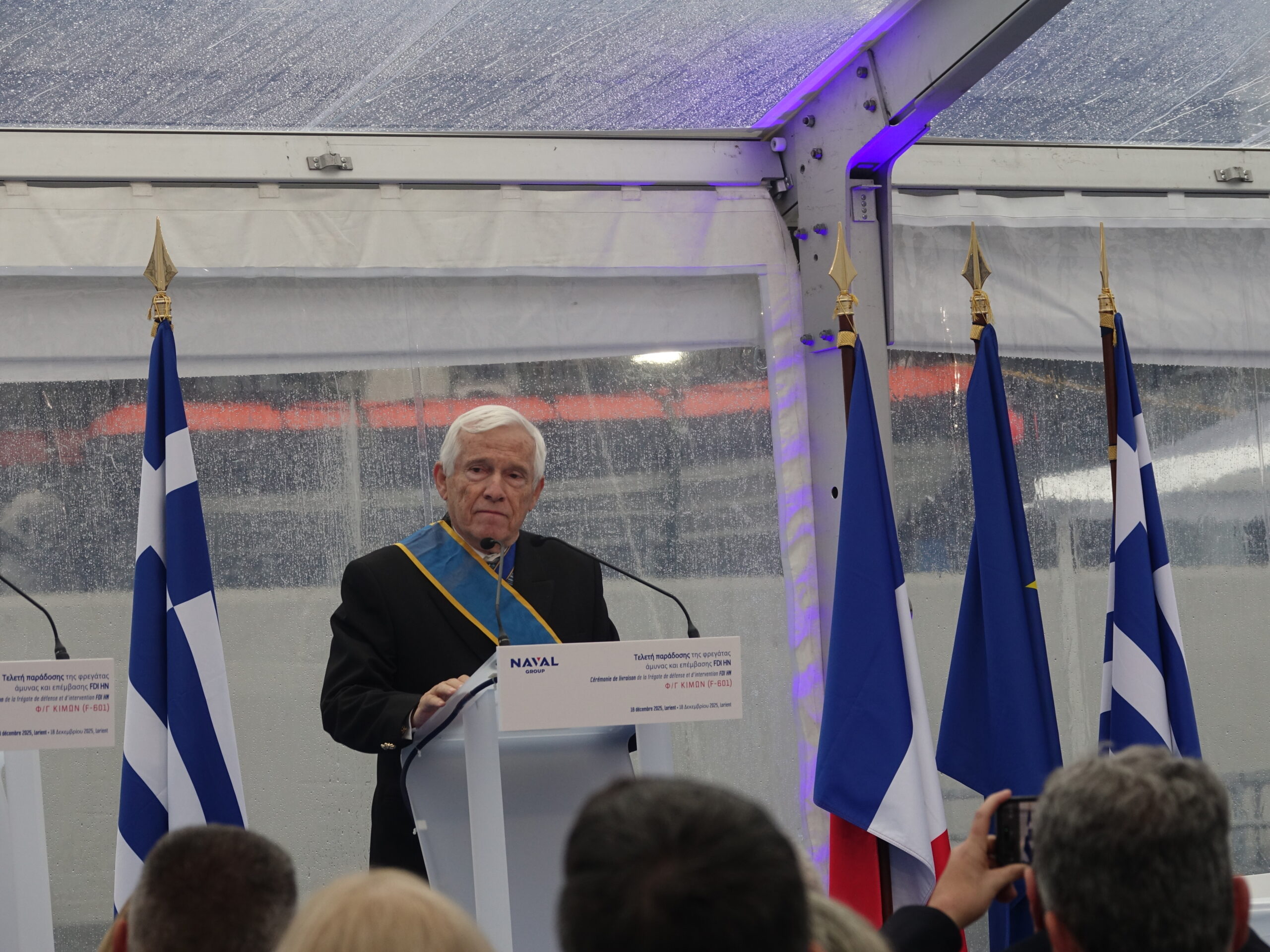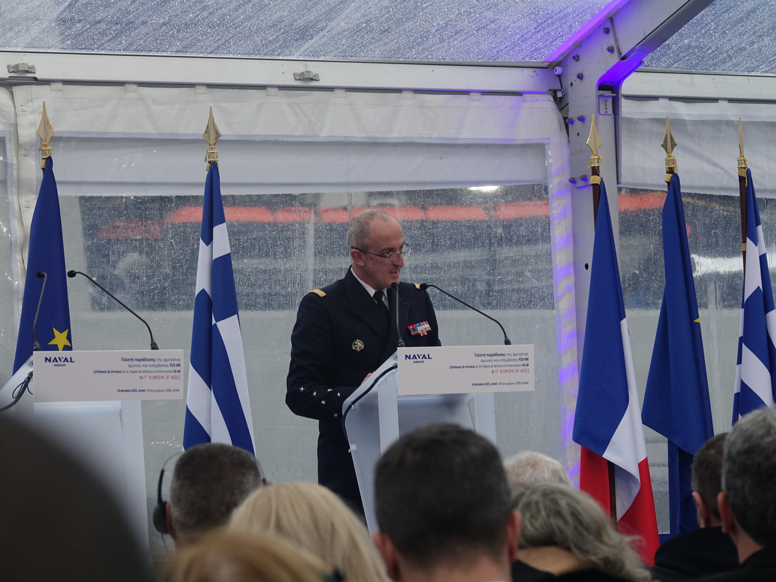 Στη συνέχεια, ο Pierre-Éric Pommellet, πρόεδρος και διευθύνων σύμβουλος της Naval Group, παρουσίασε το πρόγραμμα ως πρότυπο συνεργασίας, αναφέροντας την ενσωμάτωση 70 ελληνικών εταιρειών στο πρόγραμμα και στην εφοδιαστική αλυσίδα. Ο Pommellet υπογράμμισε την ταχύτητα κατασκευής και την κοινή βιομηχανική προσπάθεια, ευχαριστώντας τόσο τις ελληνικές όσο και τις γαλλικές εταιρείες.