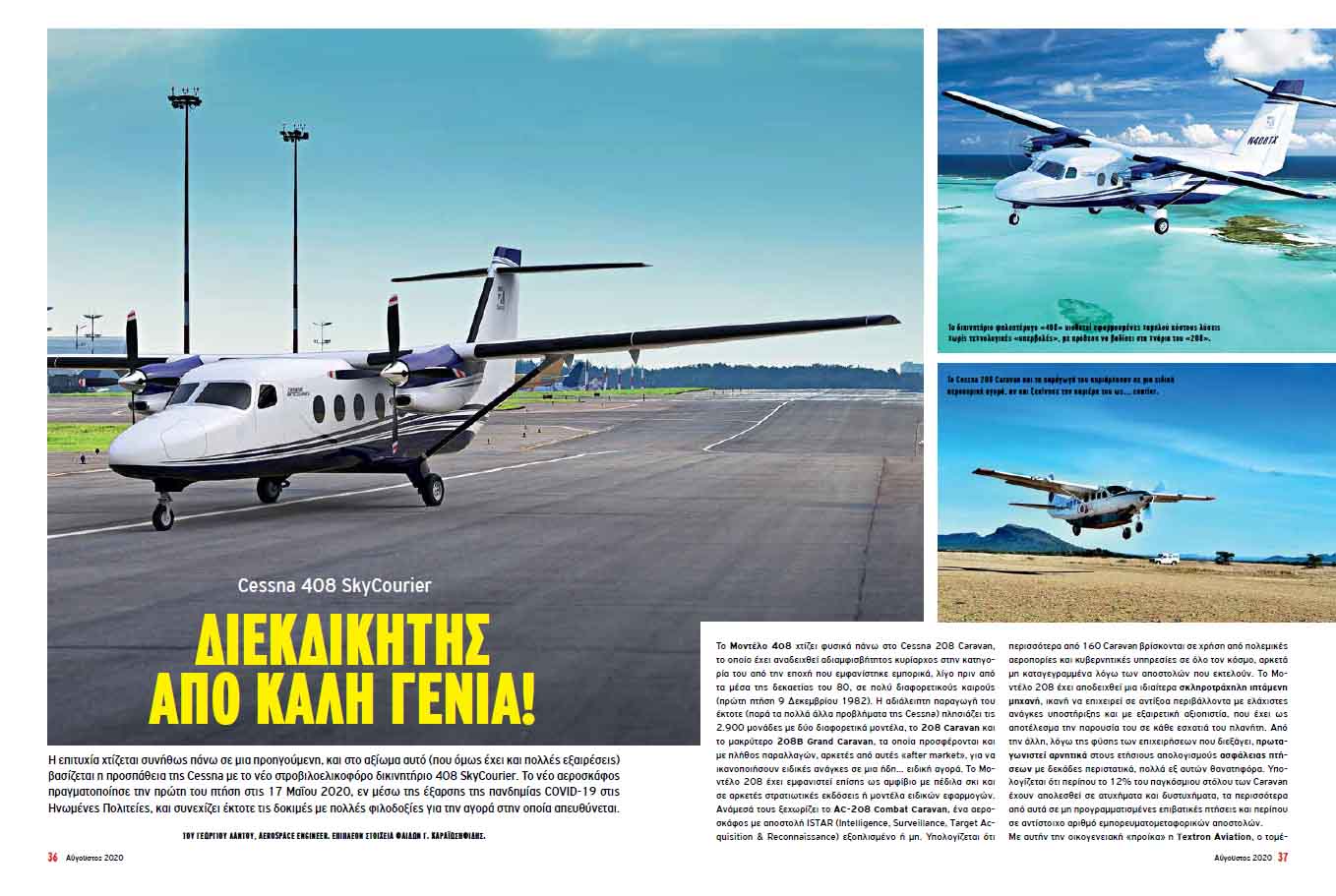 Η επιτυχία χτίζεται συνήθως πάνω σε μια προηγούμενη, και στο αξίωμα αυτό (που όμως έχει και πολλές εξαιρέσεις) βασίζεται η προσπάθεια της Cessna με το νέο στροβιλοελικοφόρο δικινητήριο 408 SkyCourier. Το νέο αεροσκάφος πραγματοποίησε την πρώτη του πτήση στις 17 Μαΐου 2020, εν μέσω της έξαρσης της πανδημίας COVID-19 στις Ηνωμένες Πολιτείες, και συνεχίζει έκτοτε τις δοκιμές με πολλές φιλοδοξίες για την αγορά στην οποία απευθύνεται.
