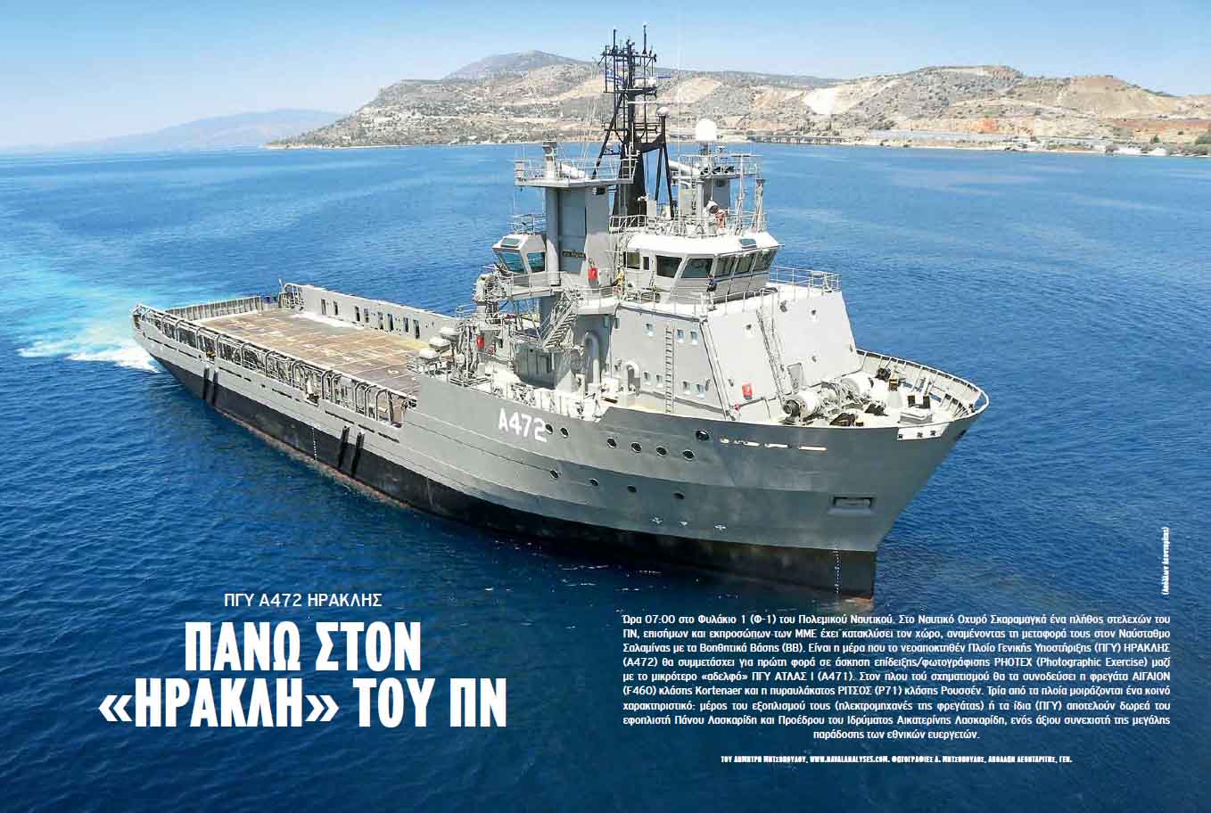 Στις αρχές Ιουλίου συμμετείχε για πρώτη φορά σε άσκηση επίδειξης/φωτογράφισης PHOTEX (Photographic Exercise) το νεοαποκτηθέν Πλοίο Γενικής Υποστήριξης (ΠΓΥ) ΗΡΑΚΛΗΣ (Α472) που πραγματοποίησε πλου με το μικρότερο «αδελφό» ΠΓΥ ΑΤΛΑΣ Ι (Α471), δωρεές αμφότερα του εφοπλιστή Πάνου Λασκαρίδη. Η προθήκη των δυο αυτών μονάδων, ως «πλωτών πολυεργαλείων», και η ενδεχόμενη αγορά τού απαραίτητου εξοπλισμού για την πλήρη εκμετάλλευση των δυνατοτήτων τους θα προσδώσει πολλαπλά οφέλη, με συνέπεια τη δραματική αναβάθμιση της επιχειρησιακής ευελιξίας και αποτελεσματικότητας του ελληνικού Στόλου.
