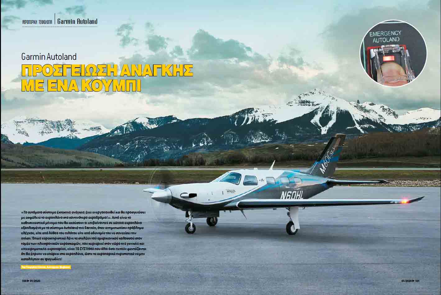 To Autoland της Garmin, είναι ένα επαναστικό σύστημα που επεμβαίνει για να αντιμετωπίσει πρόβλημα ελέγχου, είτε από λάθος του πιλότου είτε από αδυναμία του να συνεχίσει την πτήση. Όπως χαρακτηριστικά λένε τα στελέχη τού αμερικανικού κολοσσού στον τομέα των ηλεκτρονικών αεροσκαφών, που κυριαρχεί στον χώρο της γενικής και επιχειρηματικής αεροπορίας, είναι TO ΣΥΣΤΗΜΑ που όλοι όσοι πετούν φαντάζονται ότι θα έπρεπε να υπάρχει στα αεροπλάνα, ώστε τα αεροπορικά περιστατικά να μην καταλήγουν σε τραγωδίες!