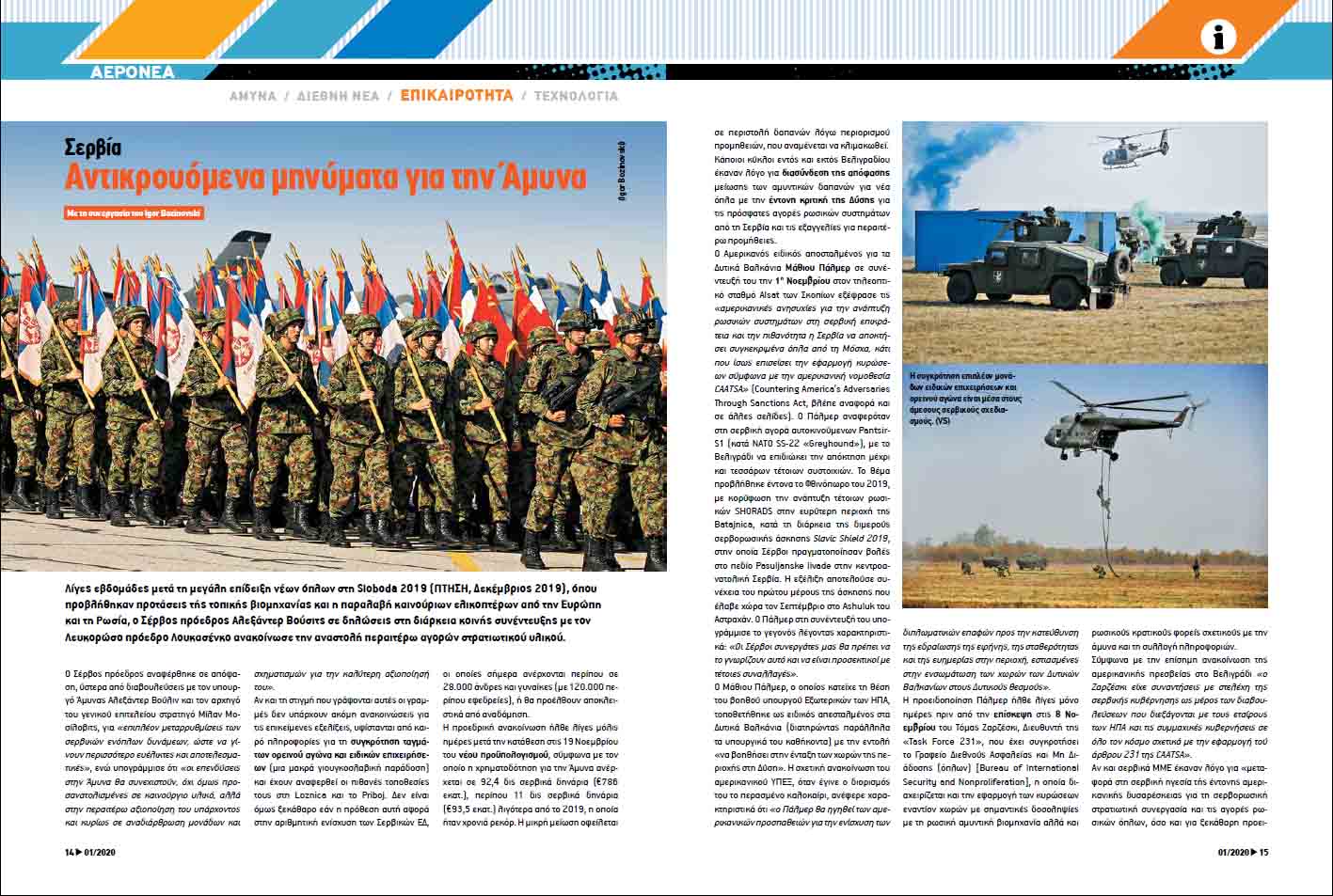 Λίγες εβδομάδες μετά τη μεγάλη επίδειξη νέων όπλων στη Sloboda 2019 (ΠΤΗΣΗ, Δεκέμβριος 2019), όπου προβλήθηκαν προτάσεις τής τοπικής βιομηχανίας και η παραλαβή καινούριων ελικοπτέρων από την Ευρώπη και τη Ρωσία, ο Σέρβος πρόεδρος Αλεξάντερ Βούσιτς σε δηλώσεις στη διάρκεια κοινής συνέντευξης με τον Λευκορώσο πρόεδρο Λουκασένκο ανακοίνωσε την αναστολή περαιτέρω αγορών στρατιωτικού υλικού. Η εξέλιξη δεν φαίνεται να είναι άσχετη με τις αμερικανικές πιέσεις σχετικά με τα ρωσικής προέλευσης όπλα που αποκτά το Βελιγράδι.