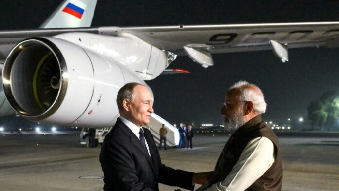 Ο Ρώσος πρόεδρος Βλαντίμιρ Πούτιν έφθασε σήμερα στο Νέο Δελχί, όπου τον υποδέχτηκε ο Ινδός πρωθυπουργός Ναρέντρα Μόντι στο αεροδρόμιο. Πρόκειται για την πρώτη επίσκεψη του Ρώσου ηγέτη στην παλιά φίλη χώρα Ινδία από την έναρξη του πολέμου στην Ουκρανία πριν από σχεδόν τέσσερα χρόνια.
