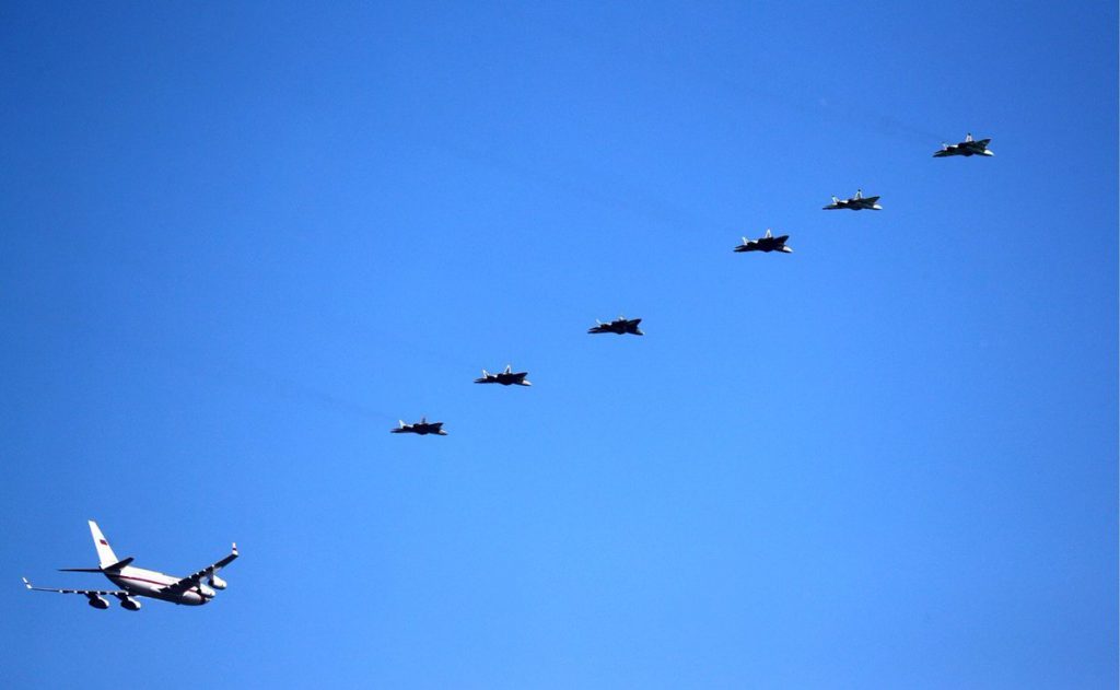 Όπως τονίζει το «The Drive», αυτός είναι περίπου ο μισός αριθμός των Su-57 που έχει κατασκευαστεί και είναι αρκετά πιθανό να αποτελεί τον μεγαλύτερο σχηματισμό Su-57 που έχει πετάξει ποτέ.