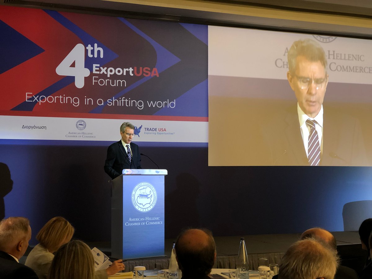 .@USAmbPyatt at @AmChamGr Export Forum: Greece’s gov is moving fast on long hoped for reforms, helping grow bilateral trade between our countries. During #StrategicDialogue, we committed to help Greek companies capture opportunities in U.S. market, benefiting both our countries. pic.twitter.com/J0RXt8IQIz