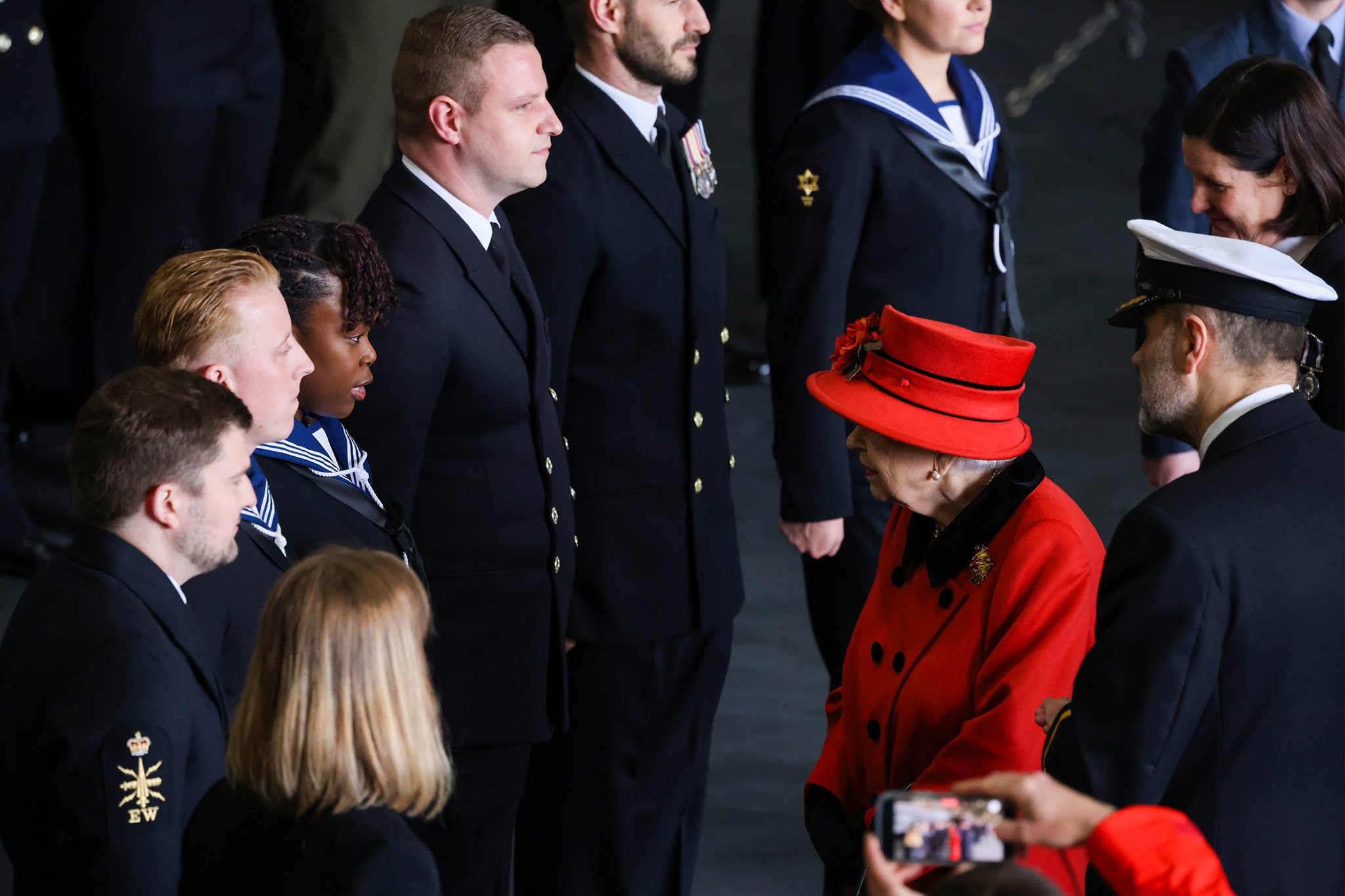 The ship’s company bid farewell to The Queen as she departs HMS Queen Elizabeth. pic.twitter.com/AGpYeLn9P6