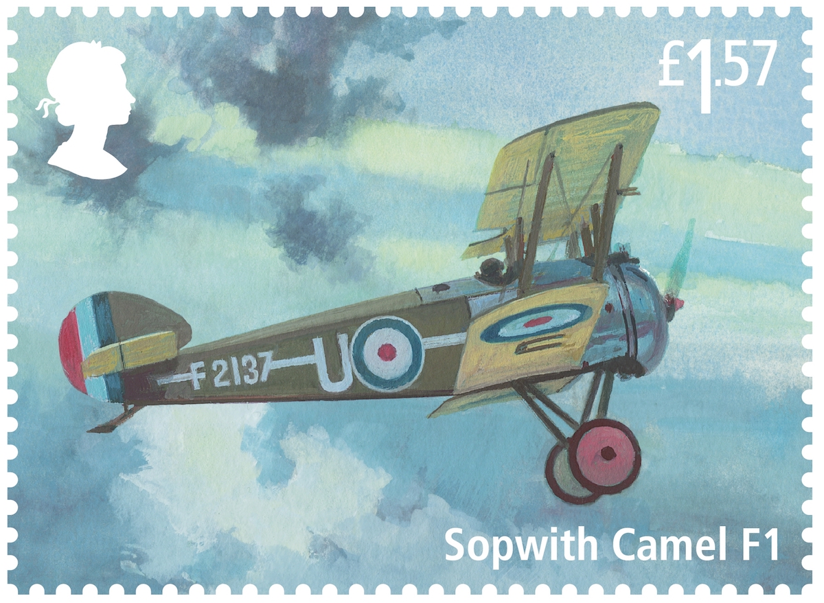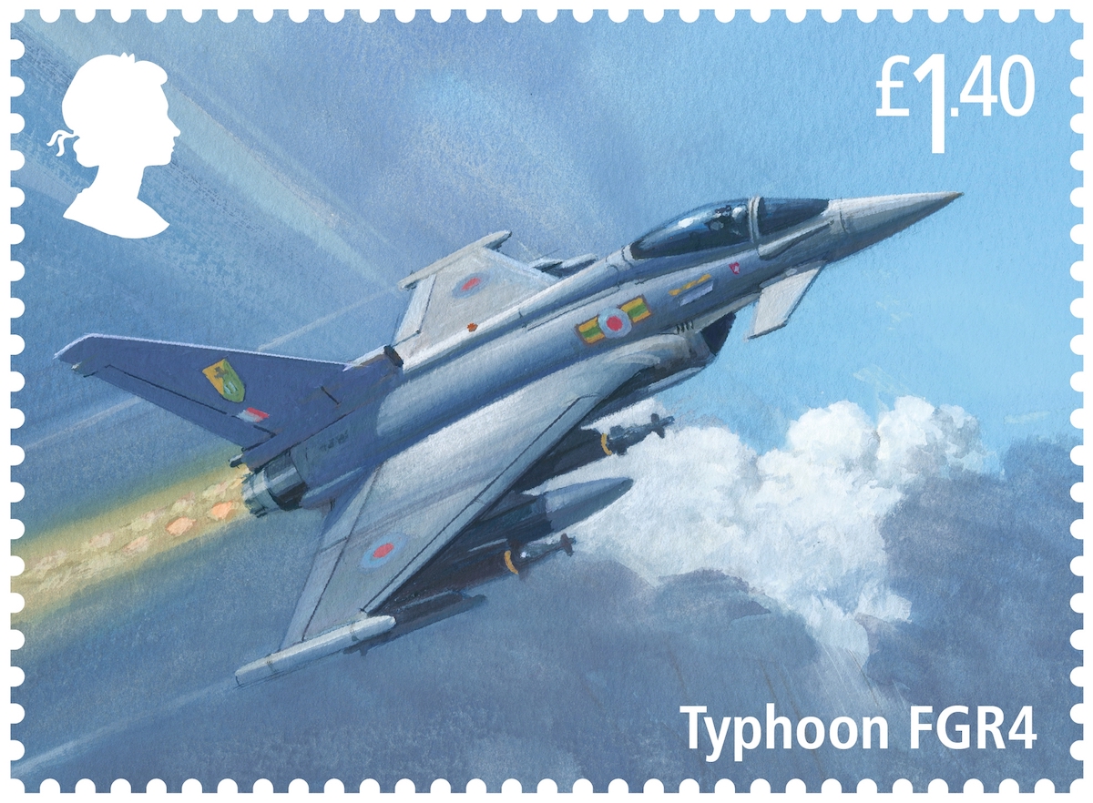 Στα γραμματόσημα φιγουράρουν το μαχητικό του Α΄ Παγκοσμίου Πολέμου Sopwith Camel F1, ένα Hurricane Mk.1 από την Μάχη της Αγγλίας, εμβληματικά μεταπολεμικά τζετ της RAF με την μορφή του υπερηχητικού Lightning F.6 και του πυρηνικού βομβαρδιστικού Vulcan B.2, το Nimrod MR2 που προστάτευε τις θάλασσες της Βρετανίας και το μαχητικό με το όνομα που ακόμη… δεν ακούγεται καλά στην Γερμανία –το υπερσύγχρονο Typhoon FGR4.