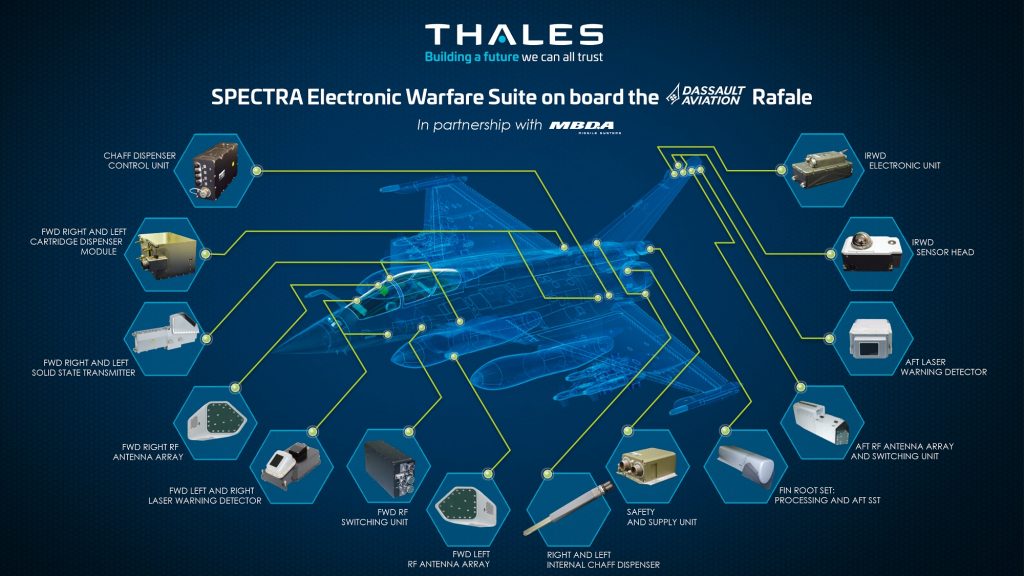 Tα Rafale διαθέτουν ένα “υπερόπλο” που δεν είναι άλλο από τη σουίτα ηλεκτρονικού πολέμου SPECTRA. Αν θεωρήσουμε πως πρώτο είναι ο πύραυλος Meteor, το εξαιρετικών δυνατοτήτων ραντάρ AESA (σχετικό λινκ στο τέλος του άρθρου), τότε δικαιωματικά το SPECTRA είναι το τρίτο υπερόπλο του Rafale, που θα προσφέρει πρωτοφανείς δυνατότητες στην Πολεμική Αεροπορία.