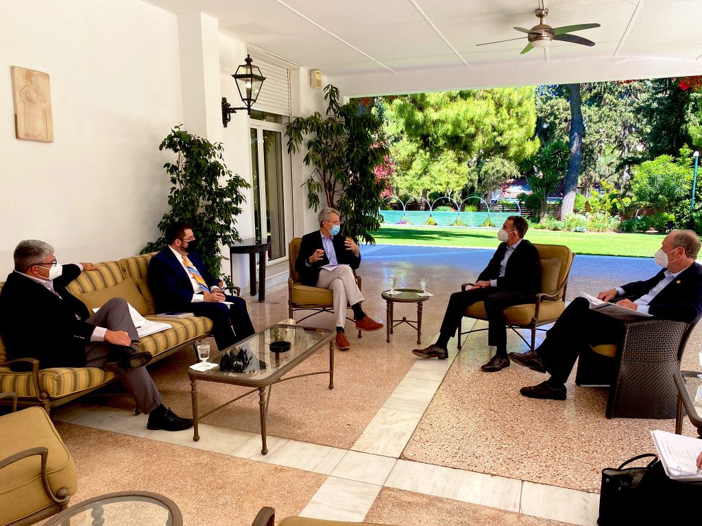 Pleased to welcome @GovernorVA to Athens. We look forward to advancing US-Greece trade & investment ties with Virginia in areas like defense, construction, food, IT & manufacturing, working with great partners like @Pierrakakis, @AdonisGeorgiadi, @CFragoyiannis & @AmChamGr. pic.twitter.com/D4sudnxASg