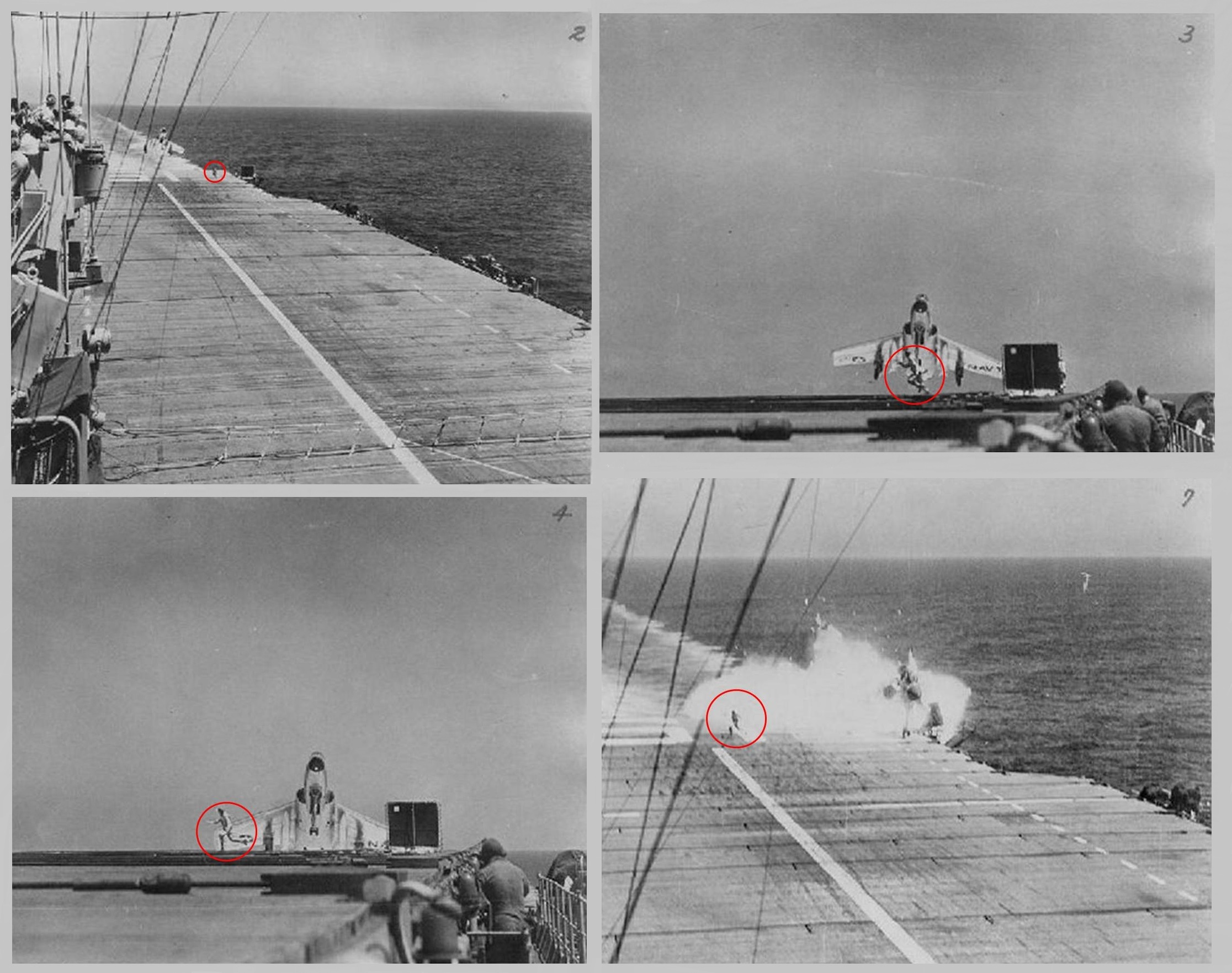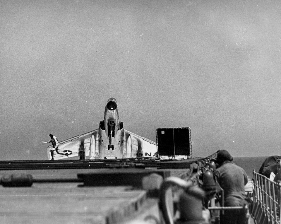 Οι προσνηώσεις των χειριστών της VF-124 που περνούσαν δοκιμασία αξιολόγησης για επιχειρήσεις από αεροπλανοφόρο (Carrier Qualification) ανοικτά της Καλιφόρνια δεν ήταν χωρίς απρόοπτα. Στο βίντεο, ένα Cutlass χάνει όλα τα συρματόσχοινα ανάσχεσης και καταλήγει στο «φράγμα» προκαλώντας ζημιά στο ρινιαίο ενώ σε ένα άλλο καταρρέει το δεξιό σκέλος κατά την προσνήωση. Το μαχητικό της Vought ποτέ δεν ήταν εύκολο αεροπλάνο.