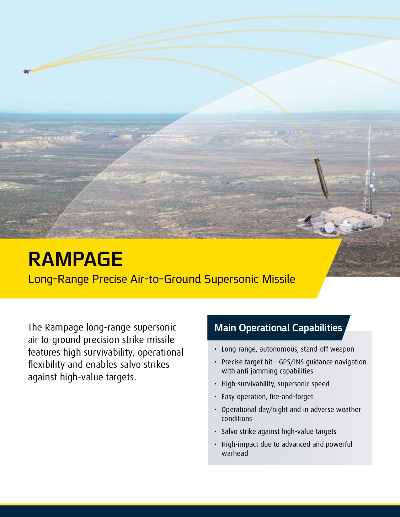 Η όλη ιδέα για ένα χαμηλού κόστους stand off όπλου, με μεγάλη ταχύτητα (υπερηχητική) που θα κάνει την αναχαίτισή του από δύσκολη ως αδύνατη, με μεγάλη εμβέλεια, βασίζεται σε μια ρουκέτα μεγάλου βεληνεκούς του πυροβολικού. Έτσι, δημιουργήθηκε το ισραηλινό Rampage, που βασίζεται στην ρουκέτα πυροβολικού μεγάλου βεληνεκούς, EXTRA.