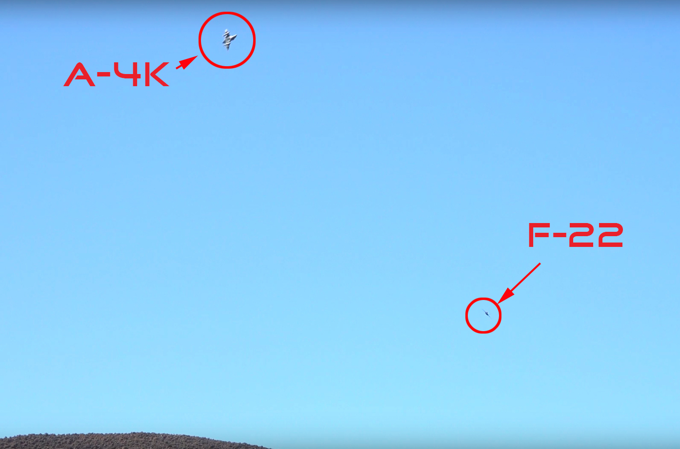 Στο βίντεο που έχει γίνει viral, το Raptor εντοπίζει το Α-4Κ να πετά χαμηλά πάνω από μια πλαγιά και το στρώνει στο κυνήγι. Το F-22 είναι ένα από τα τέσσερα μαχητικά του τύπου τα οποία επικουρούμενα από ισάριθμα F-15 είχαν αναλάβει βάσει του σεναρίου της άσκησης να «καθαρίσουν» την περιοχή από εχθρικά μαχητικά –στον ομώνυμο ρόλο, δυο Α-4Κ της Draken– για το «πακέτο» κρούσης που ακολουθεί.