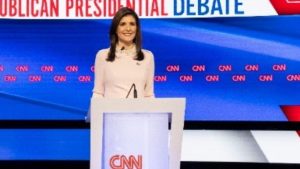 «Η πλειονότητα των Αμερικανών λένε ότι δεν θέλουν να επιλέξουν μεταξύ δύο 80άρηδων προέδρων», σχολίασε η Χέιλι, η οποία επιμένει στα ζητήματα που προσελκύουν τους Ρεπουμπλικάνους ψηφοφόρους, όπως η αντιμετώπιση της παράτυπης μετανάστευσης, η μείωση του χρέους και η σκληρή στάση έναντι της Κίνας.