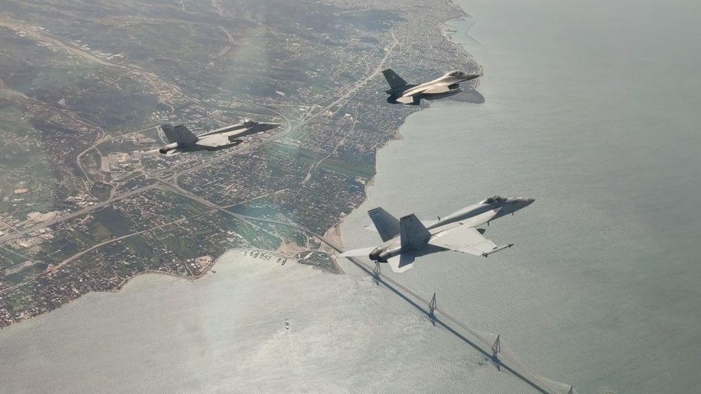 Ελληνικό F-16 και αμερικανικά F/A-18 πάνω από τη γέφυρα Ρίου-Αντιρρίου