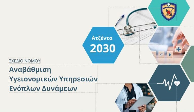 Το Σχέδιο Νόμου το οποίο εντάσσεται στη συνολική μεταρρύθμιση των Ενόπλων Δυνάμεων με την «Ατζέντα 2030», στοχεύει στην ουσιαστική αναβάθμιση και αναδιοργάνωση των Υγειονομικών Υπηρεσιών. Αποβλέπει επίσης στην αντιμετώπιση των παθογενειών της λειτουργίας των Στρατιωτικών Νοσοκομείων, στον εκσυγχρονισμό του πλαισίου της ιεραρχικής εξέλιξης του στρατιωτικού υγειονομικού προσωπικού και στην παροχή ολοκληρωμένης υγειονομικής περίθαλψης στα στελέχη και τα μέλη της οικογένειας των Ενόπλων Δυνάμεων.