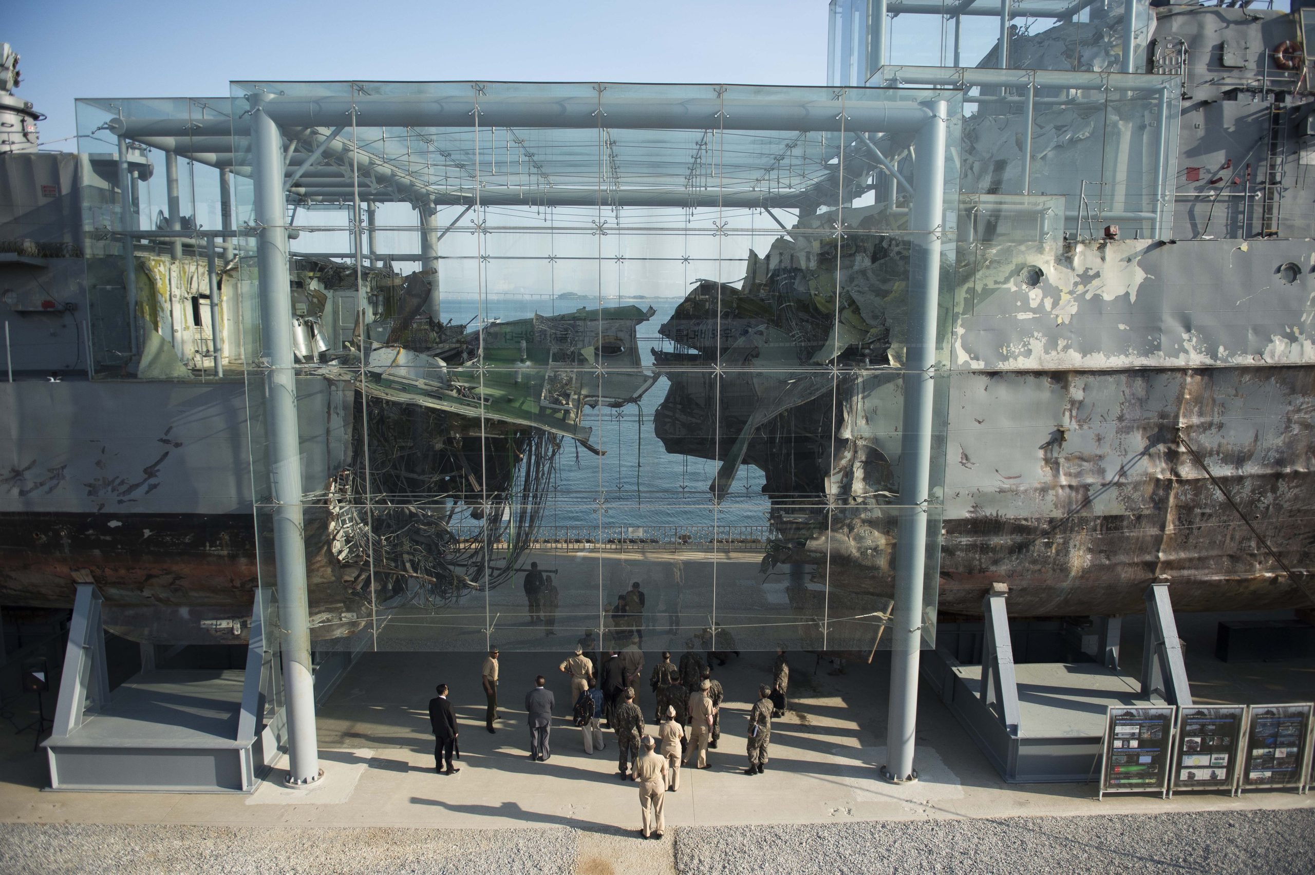 Η κορβέτα Cheonan ανελκύστηκε από τη Νότια Κορέα και εκτίθεται σήμερα κομματιασμένη από το χτύπημα της τορπίλης (U.S. Navy photo by Mass Communication Specialist 1st Class Peter D. Lawlor/Released)
