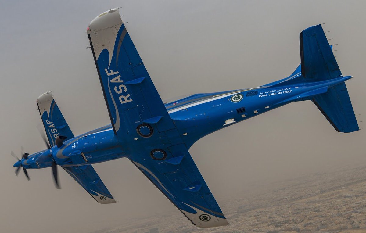 (Μπλε και όχι πράσινα) Pilatus T-21 της Αεροπορικής Ακαδημίας King Faisal της Βασιλικής Αεροπορίας της Σαουδικής Αραβίας πάνω από το Ριάντ.