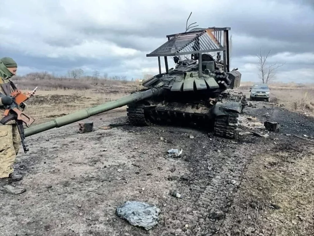 Ουκρανοί στρατιώτες οπλισμένοι με σύγχρονους αντιαρματικούς πυραύλους, παροχή των κρατών της Δύσης, κατέστρεψαν δεκάδες ρωσικά T-72B3, τα οποία μάλιστα είχαν εφοδιαστεί και με πρόσθετη θωράκιση τύπου “γρίλιας” σε υπερυψωμένη κατασκευή πάνω από τον πύργο τους. Οι κατασκευές αυτές τοποθετήθηκαν στα ρωσικά άρματα λίγο πριν την έναρξη της εισβολής, για την αντιμετώπιση επιθέσεων στο ευάλωτο άνω τμήμα του πύργου.