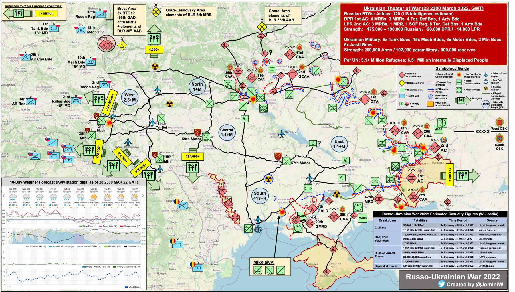 Επίσης πολύ καλή απεικόνιση και με εντοπισμό στρατιωτικών μονάδων κάνει ο χρήστης Jomini of the West, στο Twitter που συλλέγει στοιχεία και από τις δύο πλευρές, με επίσης ημερήσια ανανέωση.