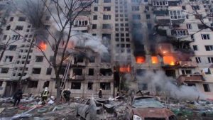 Πλήγμα σε δεκαπενταώροφη πολυκατοικία στοίχισε τη ζωή σε τουλάχιστον δύο ανθρώπους που ζούσαν σε αυτή, στη δυτική συνοικία Σβιάτοσιν, ανέφεραν οι υπηρεσίες πρώτων βοηθειών, ενώ προκάλεσε επίσης μεγάλη πυρκαγιά. «Δύο άψυχα σώματα βρέθηκαν επιτόπου», κατά την ίδια πηγή, ενώ διασώθηκαν 27 άλλοι ένοικοι του κτιρίου.