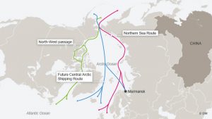 Η Ρωσία έχει κάνει σημαντικές επενδύσεις σε υποδομές για να αναπτύξει την Βόρεια Θαλάσσια Οδό, την οποία θέλει να μετατρέψει σε σημαντική γραμμή ναυσιπλοΐας, καθώς στην Αρκτική αυξάνεται η θερμοκρασία γρηγορότερα από τα άλλα μέρη του κόσμου. Προς το παρόν δεν χρησιμοποιείται τον χειμώνα, επειδή καλύπτεται από παχύ στρώμα πάγου.