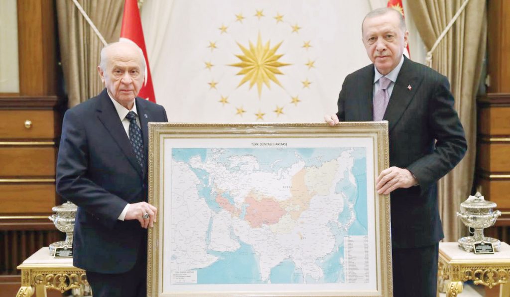 Στον χάρτη, που χάρισε στις 17 Νοεμβρίου ο Ντ. Μπαχτσελί στον Ρ.Τ. Ερντογάν περιλαμβάνονται εκτός από την Τουρκία, οι πρώην σοβιετικές Δημοκρατίες Αζερμπαϊτζάν, Τουρκμενιστάν, Ουζμπεκιστάν, Καζαχστάν, Κιργκιστάν και Τατζικιστάν με κόκκινο χρώμα και μέρος των Βαλκανίων, τμήμα του Ιράν, περιφέρειες της Ρωσίας, μέρος της Σιβηρίας, η δυτική Μογγολία και η περιοχή των Ουιγούρων στην Κίνα με πορτοκαλί και κίτρινο χρώμα. Όπως επισημαίνουν τα ρωσικά πρακτορεία ειδήσεων ΤΑΣΣ και Ιντερφάξ οι εμπνευστές του χάρτη δεν διευκρίνισαν το νόημα των διαχωρισμών, ενώ και ο ίδιος ο Ερντογάν ή άλλοι αξιωματούχοι απέφυγαν να σχολιάσουν πώς οι ίδιοι αντιμετωπίζουν τη δημιουργία και τους συμβολισμούς του χάρτη.