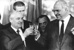 Συγκεκριμένα, το 1990 και εν όψει μίας άτακτης λήξης του Ψυχρού Πολέμου και ενώ γινόταν προσπάθεια να σχεδιαστεί η επόμενη μέρα, ο τότε γενικός γραμματέας της ΕΣΣΔ Μιχαήλ Γκορμπατσόφ είχε συνάντηση με τον Αμερικανό υπουργό Εξωτερικών Τζέιμς Μπέικερ για το θέμα της επανένωσης της Γερμανίας.