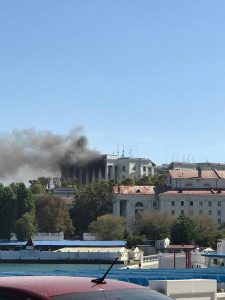 Τουλάχιστον ένας πύραυλος έπληξε το αρχηγείο του ρωσικού στόλου της Μαύρης Θάλασσας στο κριμαϊκό λιμάνι της Σεβαστούπολης, ανακοίνωσε ο τοπικός κυβερνήτης Μιχαήλ Ραζνοζάγεφ στο Telegram. Συντρίμμια έπεσαν κοντά σε γειτονικό θέατρο.