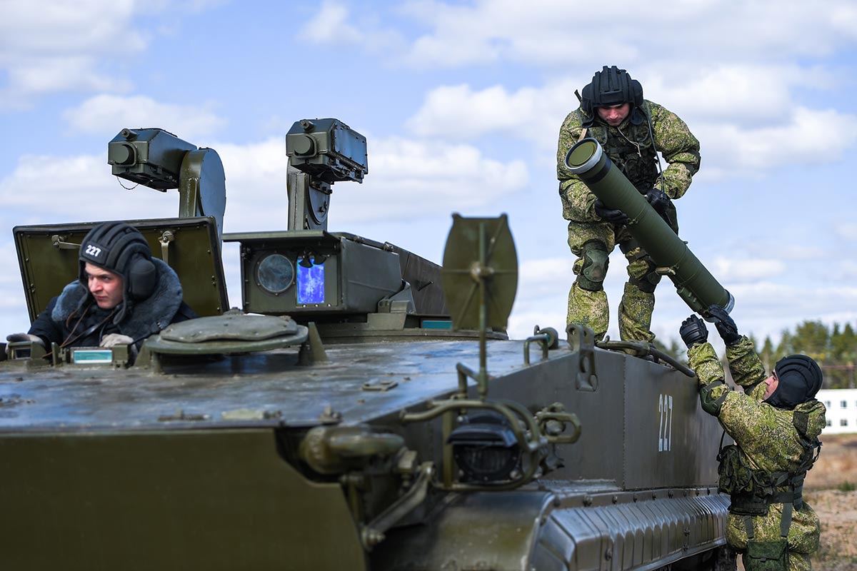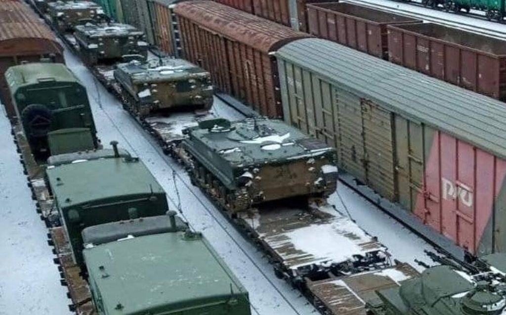 Ρωσικά ερπυστριοφόρα τεθωρακισμένα-φορείς κατευθυνομένων αντιαρματικών πυραύλων Kornet εντοπίστηκαν σε τραίνα στη Λευκορωσία, 30 μόλις χιλιόμετρα από τα σύνορα με την Ουκρανία.