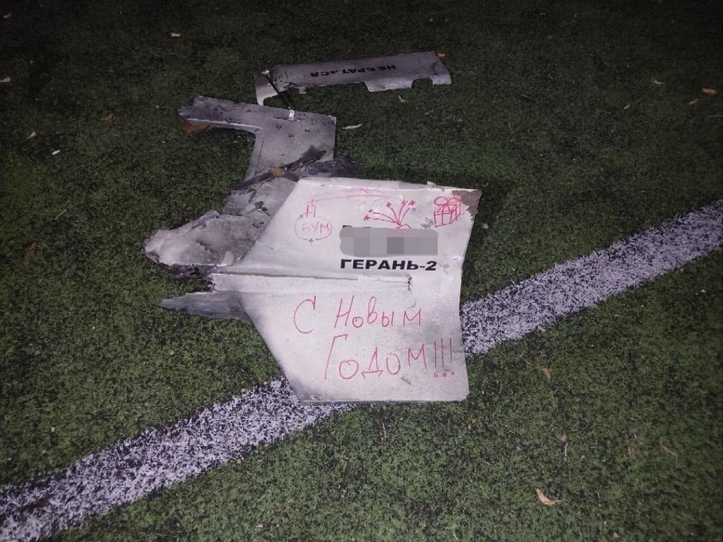 Φωτογραφίες από τα κομμάτια ενός ιρανικής κατασκευής μη επανδρωμένου Shahed 136 (Geran-2 στην ρωσική κωδικοποίηση) που έπεσε στο Κίεβο, δημοσίευσε στο Facebook ο επικεφαλής της αστυνομίας της πόλης, Andriy Nebytov. Πάνω στα συντρίμια που βρέθηκαν σε γήπεδο για παιδιά όπως γράφει, φαίνεται γραμμένη στα ρώσικα ευχή για “ευτυχισμένο το νέο έτος” μαζί με σκίτσα από δώρα, διακοσμητικές χριστουγεννιάτικες μπάλες και πυροτεχνήματα.